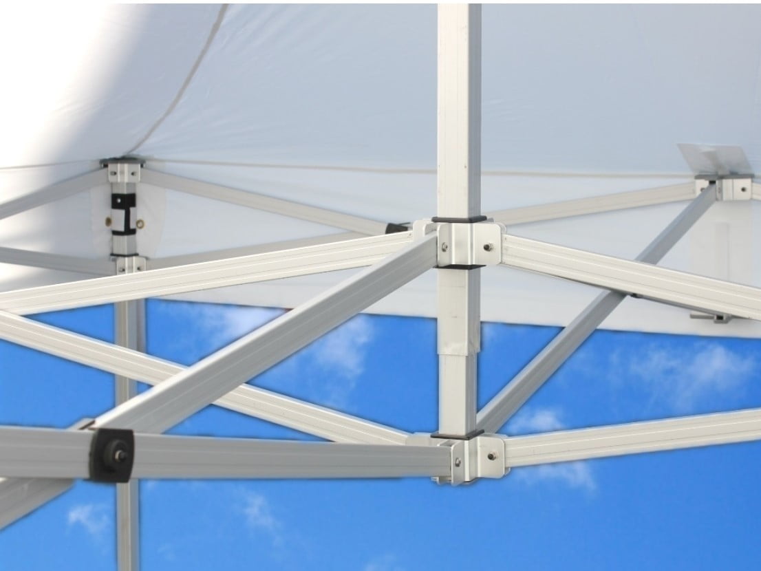 Alle Faltzelte sind dank der stabilen und gleichzeitig leichten Rahmenkonstruktion aus Aluminium super schnell und extrem einfach aufzubauen. Die Höhe ist in 3 Stufen verstellbar, dadurch erreichen Sie eine Durchgangshöhe von bis zu 2.19 Metern. Im Lieferumfang sind neben dem Gestell und der Dachplane auch immer eine praktische Tragetasche, Erdnägel und Abspannseile enthalten.