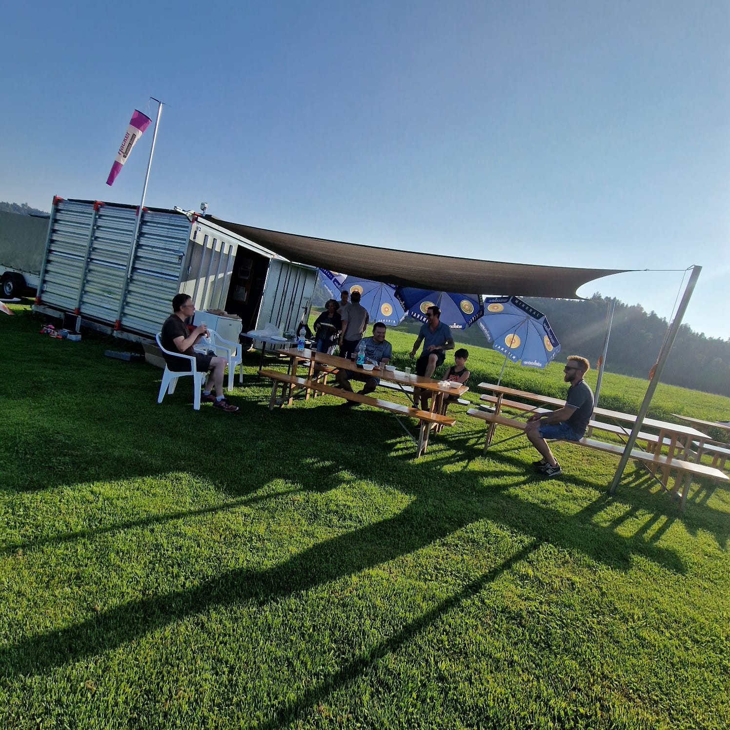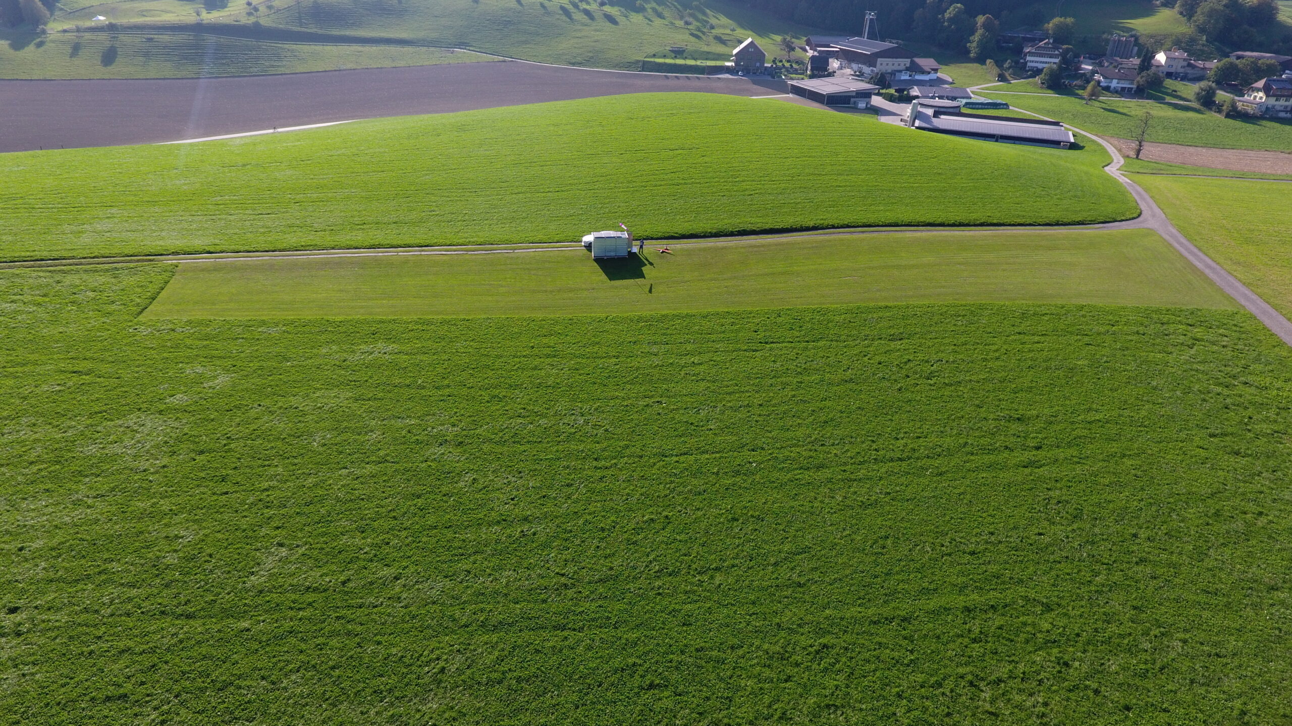 Ihr seid draussen, auf dem Modellflugplatz in Wolhusen. Ist der Platz nicht in deiner Nähe? Frage einfach bei der nächsten Gruppe in deiner Nähe an, viele Gruppen bieten Lehrer-Schüler Flüge an. Du findest die Plätze und Vereine hier: www.modellflug.ch