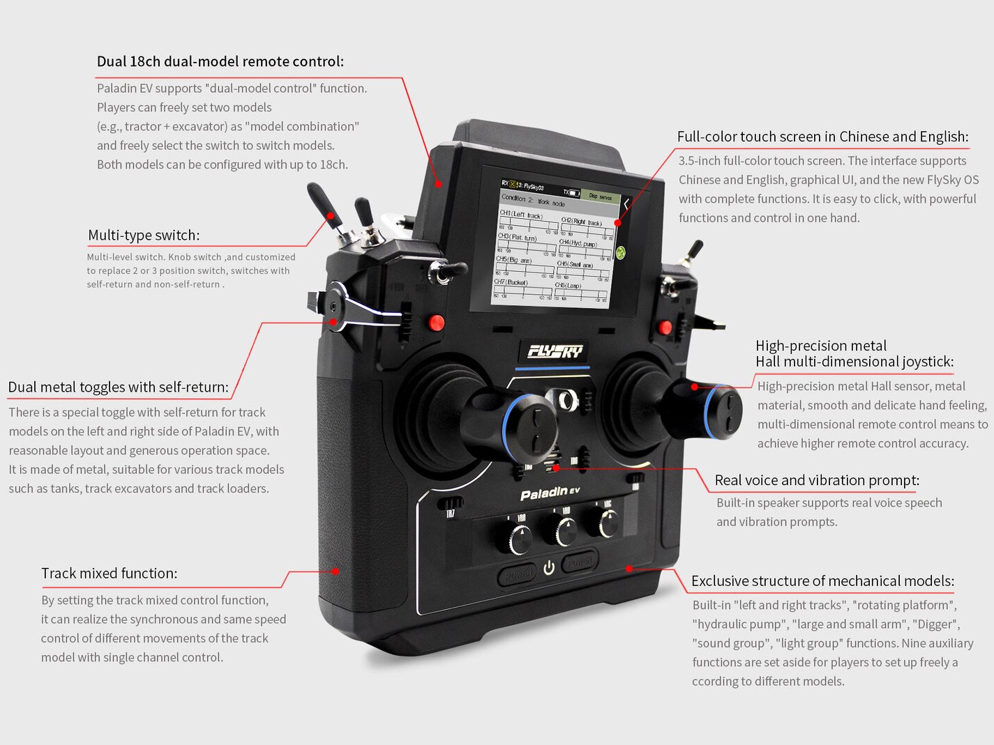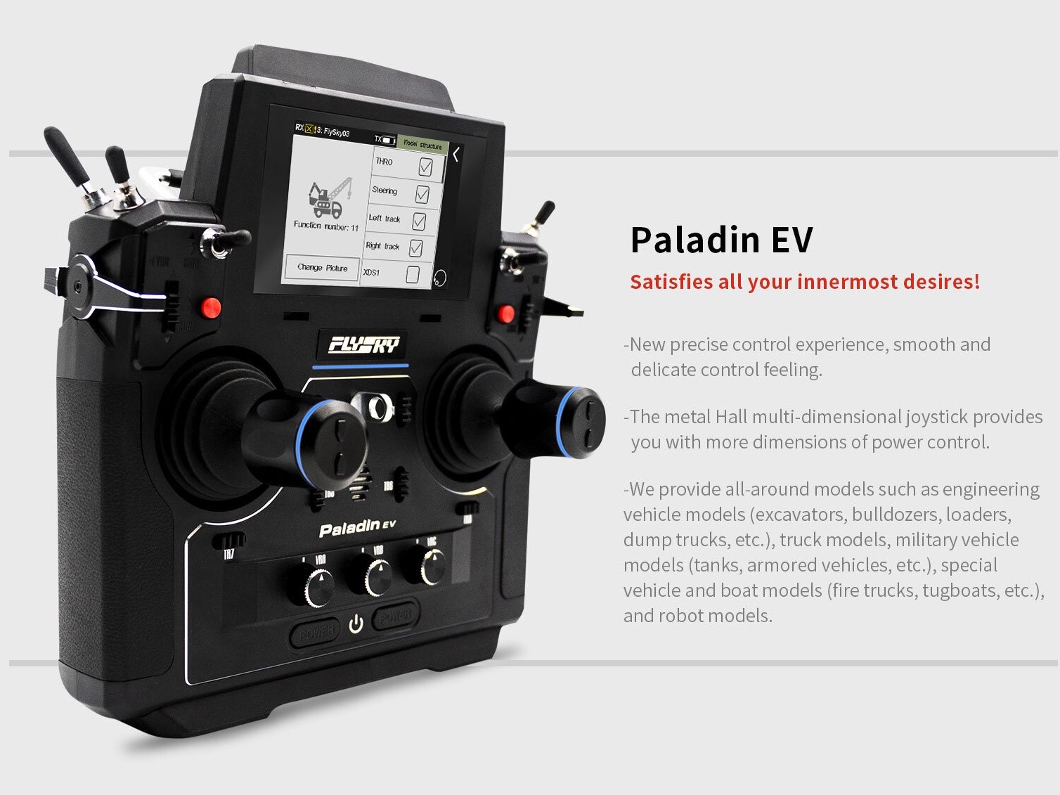 Die 18-Kanal FlySky Paladin PL18 EV mit Touchdisplay und 4D-Kreuzknüppeln bekommen Sie bei uns in der exklusiven Utimate Edition – das bedeutet, Sie erhalten das ultimative Komplett-Paket inkl. Wireless Ladestation, Aluminium Senderpult, 12-Kanal Empänger + zusätzlichem 8-Kanal Empfänger im hochwertigen Alukoffer!