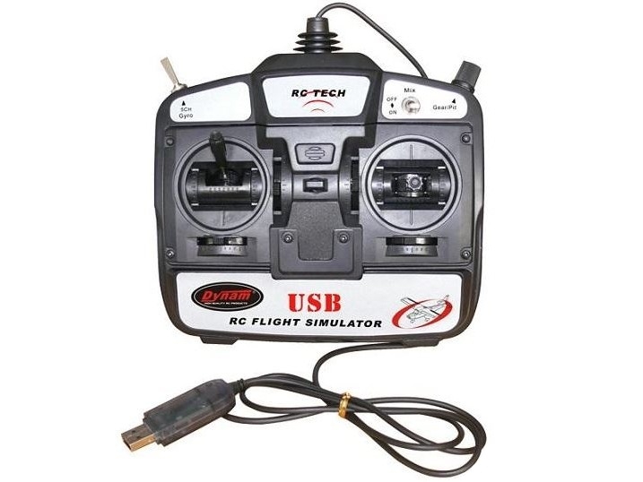 Mitgeliefert wird die bekannte Simulationssoftware FMS (freeware). Hierfür können im Internet Huderte verschiedener Modelle heruntergeladen werden – Helis, Motorflugzeuge, Jets, Raketen und sogar fliegende Rasenmäher und Autos!! Die Fernbedienung ist auch als Joy-Stick für beliebige Anwendungen am PC geeignet.