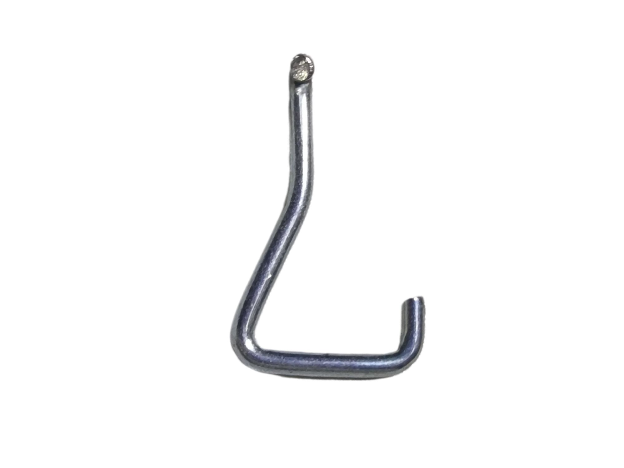 Abspannhaken zur Befestigung der Standbeinschutzblache an den Standbeinen