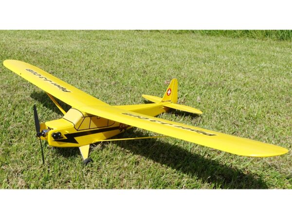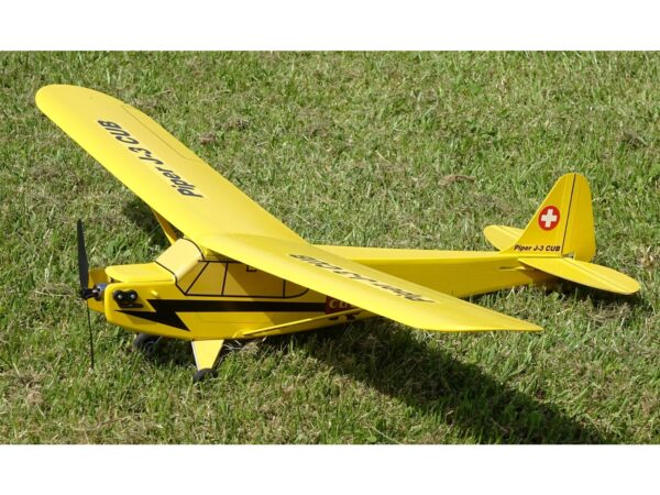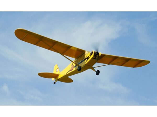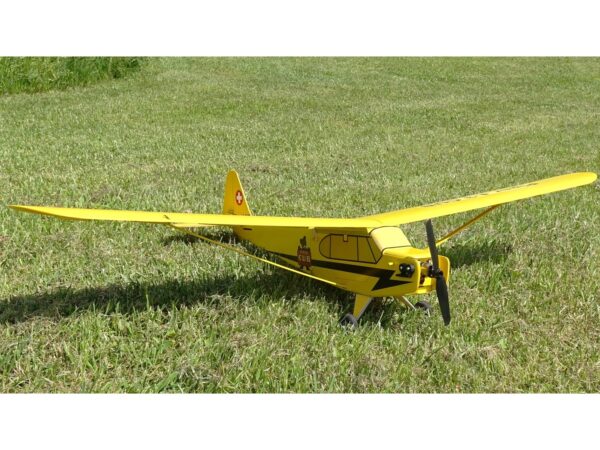 Das Modell der Piper J-3 CUB ist komplett aus Holz aufgebaut. Die Tragflächen sind mit dem bekannten Jedelsky-Brettchenprofil konstruiert. Eine Folienbespannung ist daher nicht nötig. Das komplette Modell ist in wenigen Stunden zusammengebaut. Sämtliche Bauteile sind lasergeschnitten und haben dadurch eine perfekte Passgenauigkeit. Für den Zusammenbau wird nur ein Minimum von einfachsten Werkzeugen und eine kleine Tube Holzleim benötigt. Das Modell der J-3 CUB ist für Elektroantrieb vorgesehen. Geflogen wird das Modell mit drei Steuerkanälen, Seite, Höhe und Motordrosselung. Die Piper hat unglaublich gutmütige Flugeigenschaften und eignet sich daher ideal für Einsteiger ins Modellflughobby.