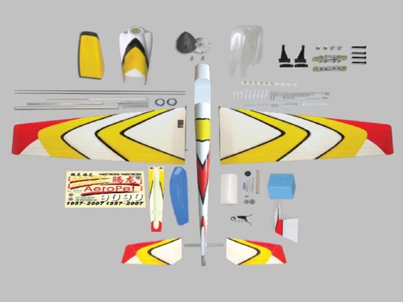Der AeroPet 90 von TWM ist ein ARF-Sportmodell mit 1700 mm Spannweite. Das Modell wird in klassischer Balsa- und Sperrholzbauweise gefertigt und ist ab Werk mit hochwertiger Bügelfolie bespannt. Rumpf, Tragflächen und Leitwerke sind vorgefertigt, die Endmontage übernimmt der Modellbauer. Zum Lieferumfang gehören alle für den Aufbau notwendigen Kleinteile und Zubehörteile, die noch nicht eingebaut sind.
