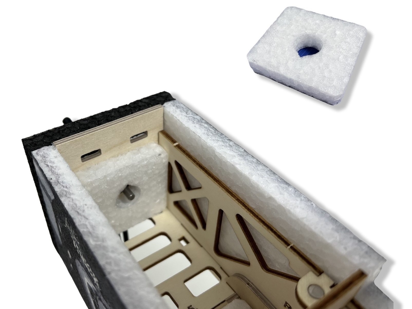 Die Tragflächen sind abnehmbar und mit zwei Plastikschrauben befestigt. Das zerlegte Flugzeug ist leicht zu transportieren. Der Rumpf ist so gross, dass man alle elektronischen Teile leicht darin verstecken kann. Der Deckel des Batteriefachs wird von Magneten gehalten, so dass man die Batterie schnell und einfach wechseln kann.