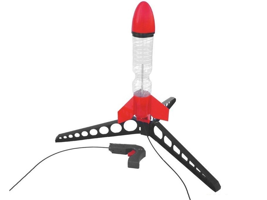 Ein fertiges System mit dem fast alle handelsüblichen PET-Flaschen ohne Verwendung von Klebstoffen oder Werkzeugen zur Wasserrakete umfunktioniert werden können. Die Raketen fliegen mit Wasser oder Luft mit bis zu 100m hoch.