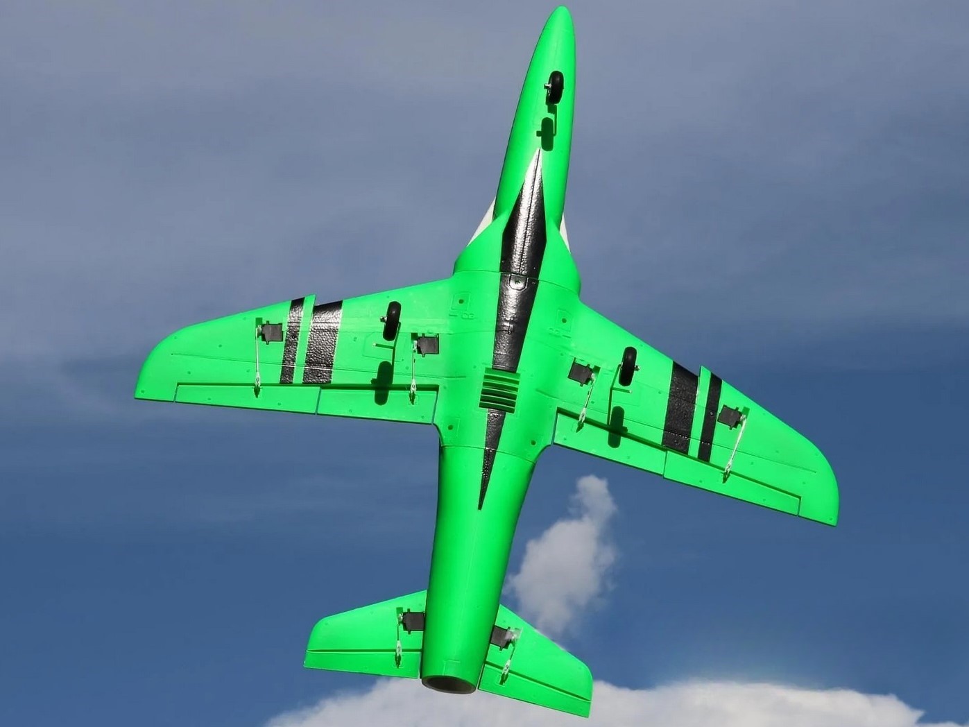Der elegante, stromlinienförmige Rumpf durchdringt den Himmel mit geringem Widerstand, während der 12-Blatt-Impeller reichlich Schub und einen realistischen Sound für aufregende Kunstflugmanöver liefert. Dank den eingebauten Flaps kann der Jet auch langsamere Landungen und kürzere Starts problemlos bewältigen. Weiter verfügt der Regler verfügt über eine Umkehrschubfunktion, welche den Jet bei der Landung abbremst und das Ausrollen bei der Landung drastisch reduziert.