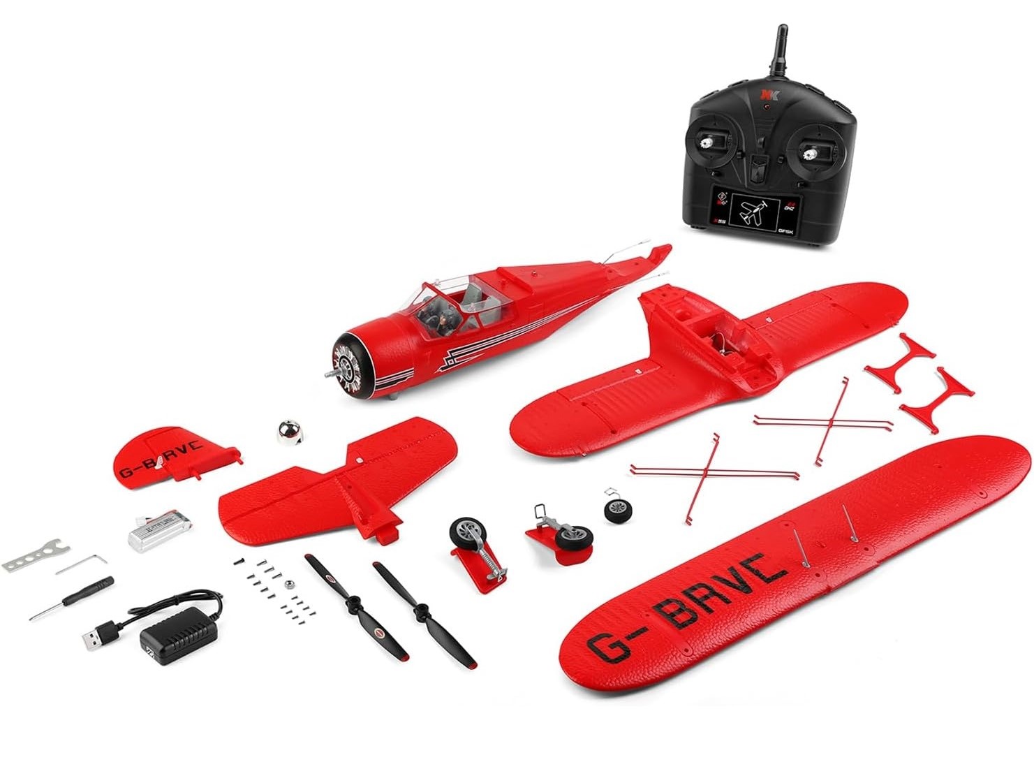 Dieser kleine Doppeldecker wird als RTF-Komplett-Set angeboten. Der Motor und die komplette Elektronik sind bereits verbaut oder installiert. Weiter gehören auch der Akku, die RC-Anlage und ein 6-Achsen-Gyro zum Lieferumfang. Dank des integrierten 6-Achs-Gyro fliegt dieses Modell sehr ruhig und kann auch von Piloten mit wenig Erfahrung gut kontrolliert werden.