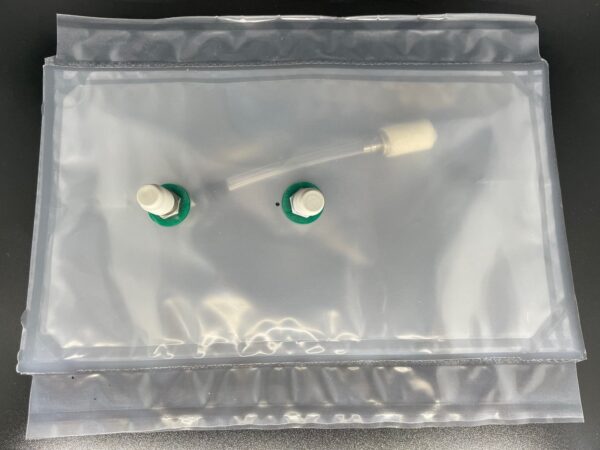 Nach aufwändiger Suche nach der geeigneten Folie wurde eine Industriefolie gefunden, die einerseits sehr stabil ist und andrerseits keine Dämpfe aus dem Beuteltank rauslässt.