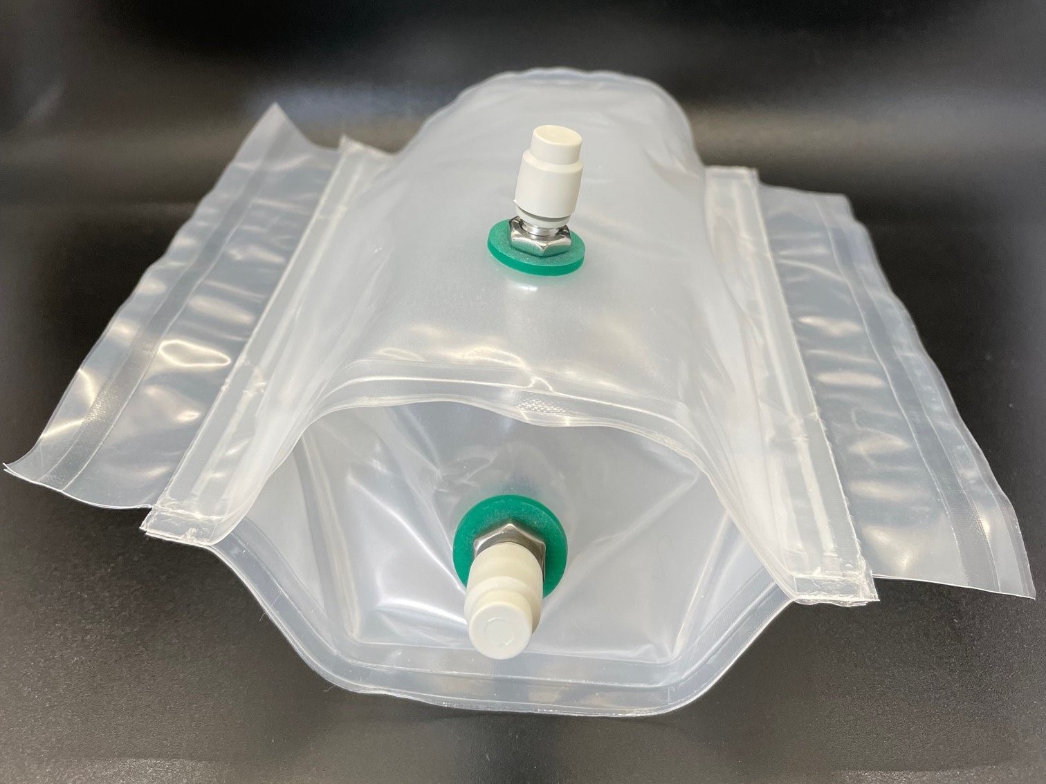 Nach aufwändiger Suche nach der geeigneten Folie wurde eine Industriefolie gefunden, die einerseits sehr stabil ist und andrerseits keine Dämpfe aus dem Beuteltank rauslässt.