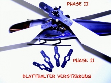 Die Verstärkung wird einfach auf den oberen und unteren Blatthalter geschraubt. Die Verstärkungen reduzieren das durchbiegen der Rotorblätter was ein direkteres umsetzen der Steuerbefehle bewirkt. Auch das gefürchtete ineinander kommen der Rotorblätter wird minimiert.