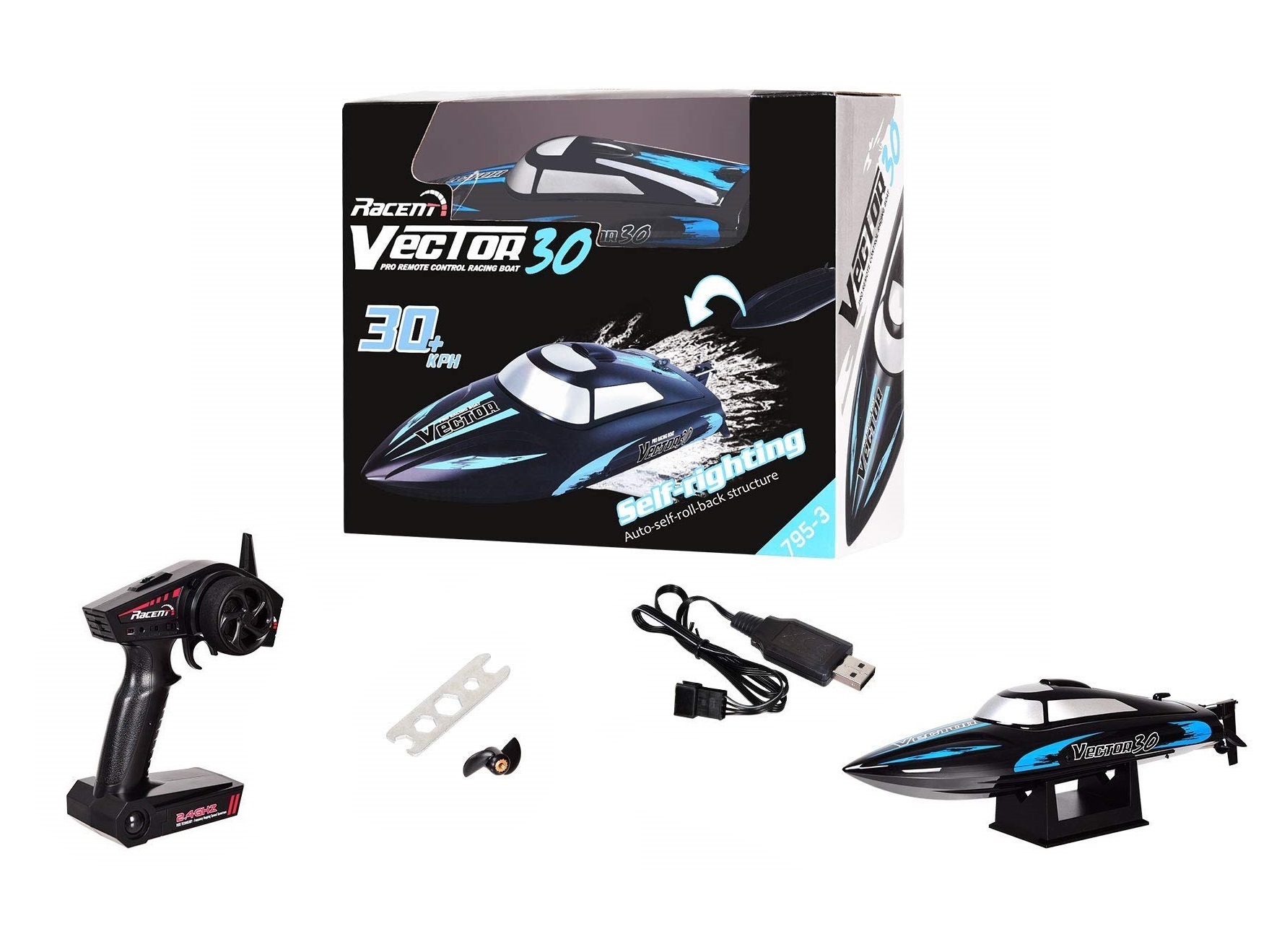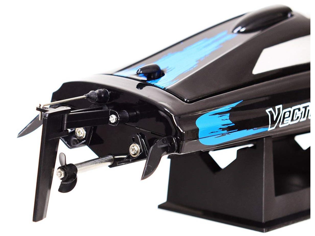 Dieses beinahe unsinkbare Boot kann einfach ins Wasser geworfen werden, es richtet sich automatisch wieder auf. Durch den Power-Antrieb erreicht das Boot eine Geschwindigkeit von bis zu 30km/h. Dank einem modernen 2.4Ghz Pistolen-Sender haben Sie den Vector immer voll im Griff!