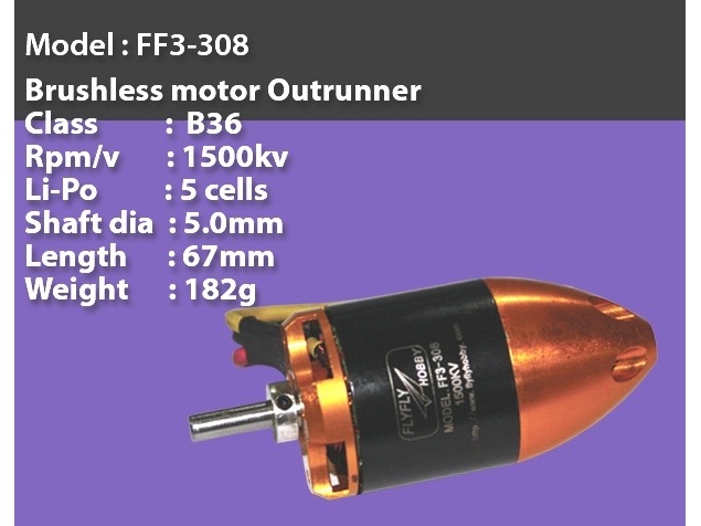 Brushless-Outrunner Motor, B36 67, 1500KV von FlyFly, FF3-308