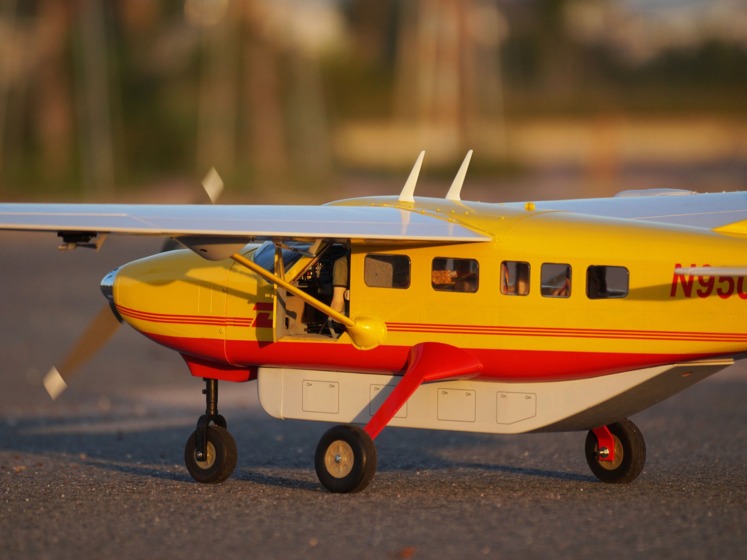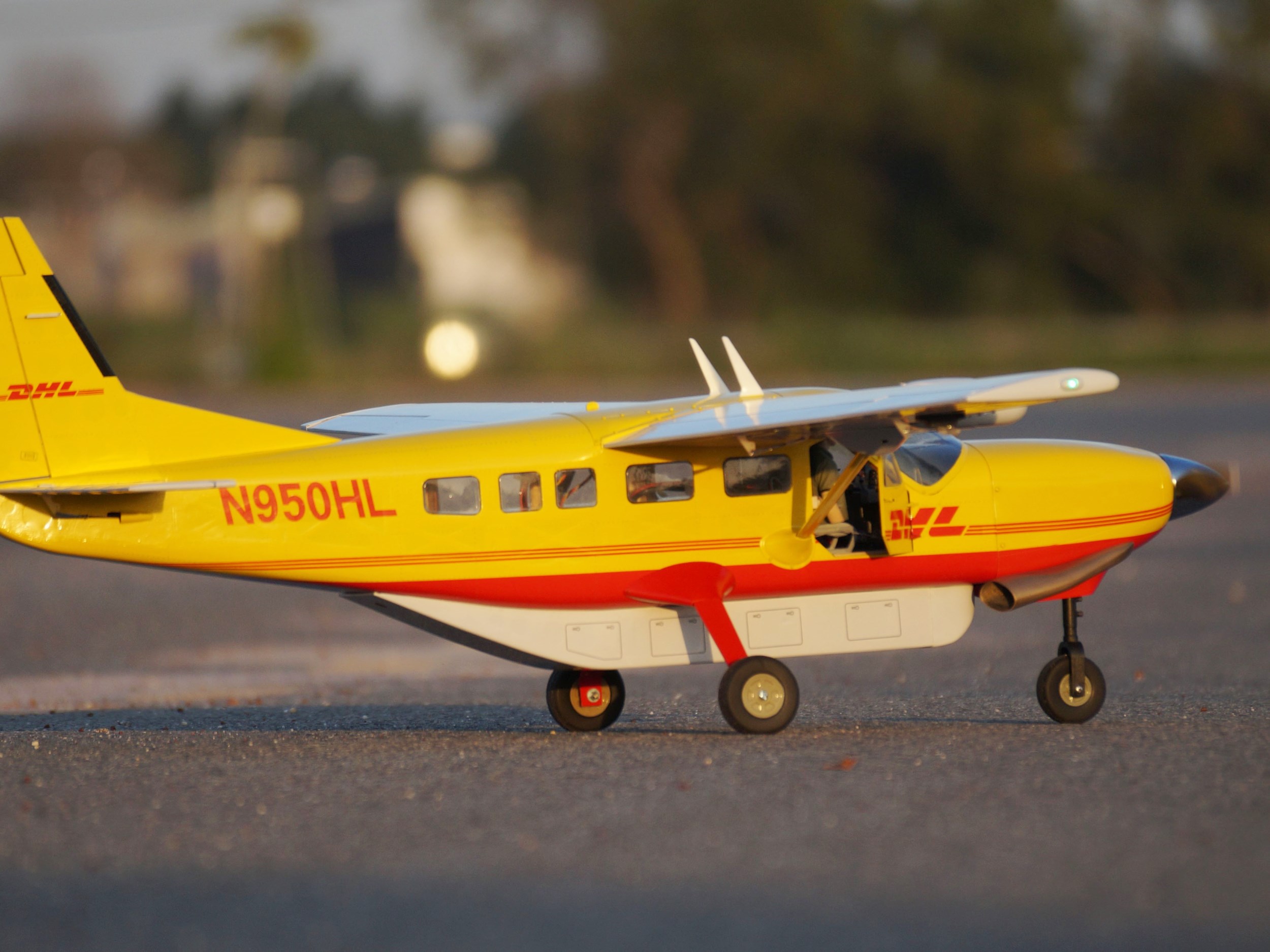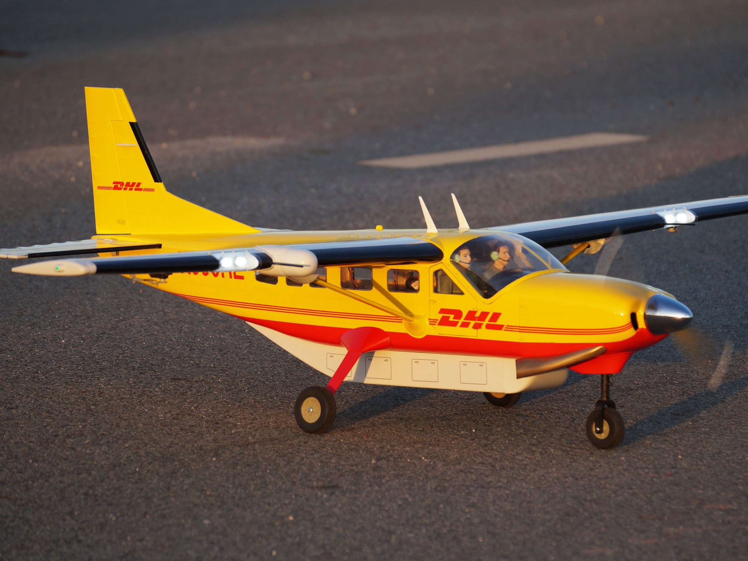 Die Cessna 208 Caravan ist im Original ein einmotoriges Turboprop Passagier- und Frachtflugzeug und wird auch gerne von Paketdiensten wie DHL für den Transport eingesetzt. Unser Modell der 208 Caravan ist eine detailfreudige Nachbildung des Originals und überzeugt durch viele Besonderheiten. Cockpit, Sitze und Pilotenpuppen werden übrigens auf modernen 3D Druckern hergestellt und im Werk handbemalt.