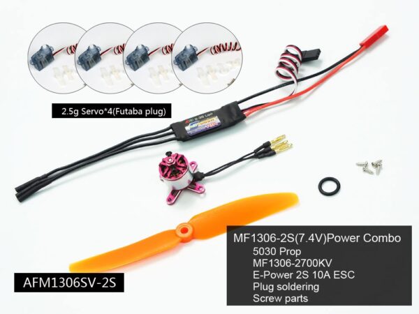2S Mini Power-Combo mit 10A Regler, 5×3 Propeller, 4x 2.5 Gramm Servo und Propeller-Saver.
