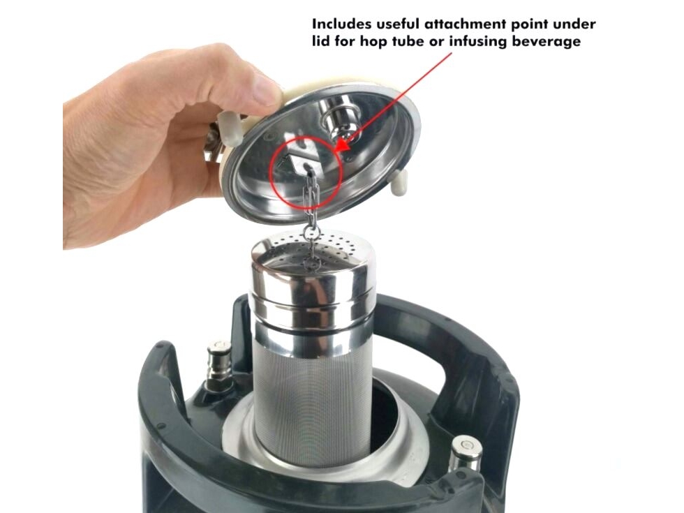 9.5L Fassungsvermögen – auch in 19 Liter verfügbar Zum Artikel 214mm Durchmesser x 370mm Höhe Hinweis: Hopfenbombe ist nicht enthalten
