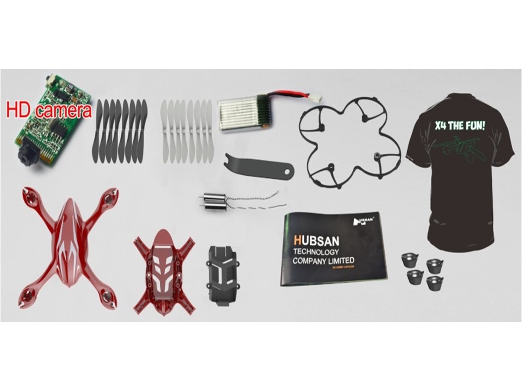 Crash-Kit mit vielen Ersatzteilen zum X4 Quadrocopter von Hubsan. Inklusive HD-Kamera, welche noch bessere Vidieos liefer.