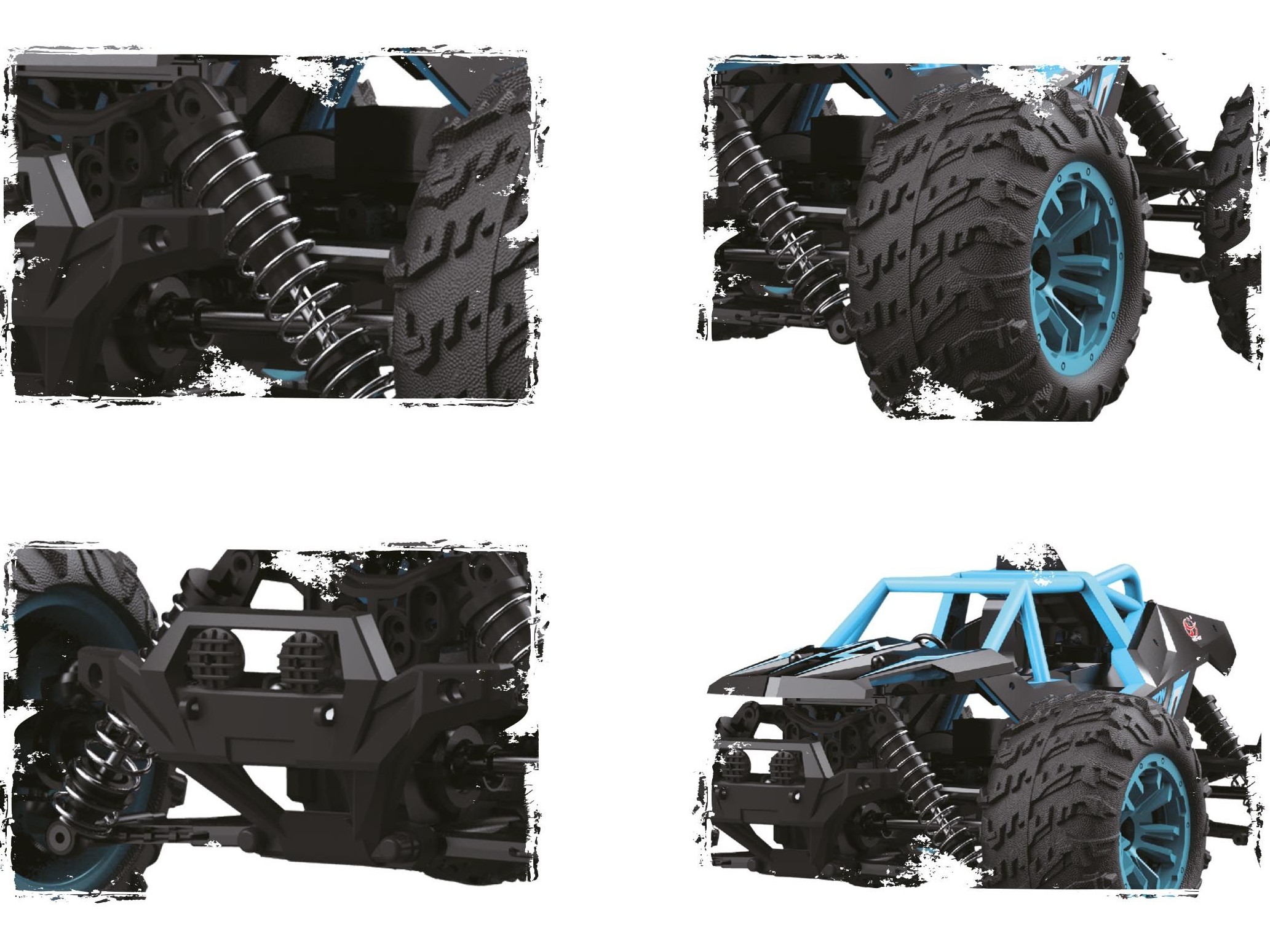 Dank Kugellagern, Federdämpfern und einem 7.4 Volt Li-Ion Akku überzeugt der DF Fun Racer mit starker Performance und optimaler Traktion. Die Super-Grip-Reifen sorgen für besten Halt – egal ob auf Asphalt oder im Gelände. Die 2.4 GHz Fernsteuerung ermöglicht eine stufenlose Einstellung der Maximalgeschwindigkeit (0–100 %), wodurch sich das Modell besonders für Fahranfänger ab 8 Jahren eignet. Mit seinem robusten Chassis, der Metall-Karosserie und dem aggressiven Offroad-Design ist der DF Fun Racer ein echter Hingucker auf jeder Strecke.