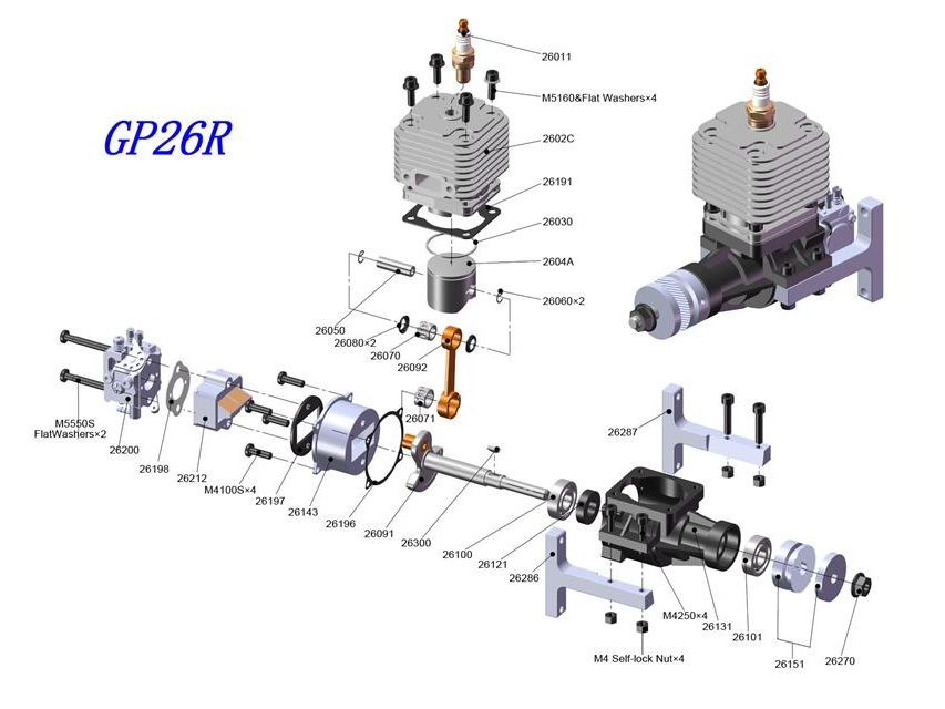 Dichtungs-Satz zu Benzinmotor 26ccm GP26R