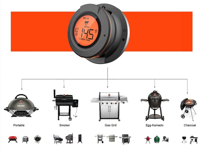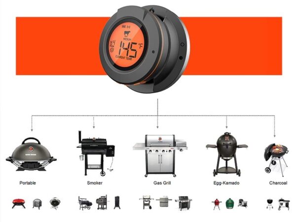 Durch die Bluetooth Funktion / APP können Sie die Temperatur im Grill jederzeit ganz einfach überprüfen. Das Thermometer kann ganz einfach auf praktisch jedem Grill montiert werden. Alle Daten können auf dem Display des Thermometers oder in der APP angeschaut werden.