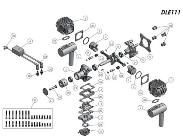 Der DLE111, 2-Zylindermotor ist eine Entwicklung auf Basis des tausendfach bewährten DLE-55. Durch seine Zuverlässigkeit eignet er sich ideal für mittlere 3D-Modelle, wie auch für Schleppflugzeuge oder Scale-Modelle.