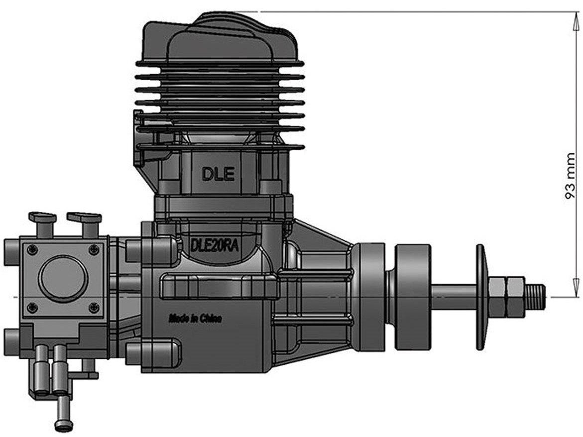 RA-Version mit Heckauslass – Besonders geeignet für schlanke Motorhauben oder Semi-Scale-Modelle, aber auch zur einfacheren Montage von Resoschalldämpfern bei Kunstflugmodellen. Der neue DLE20 ist mit einem Systemgewicht (inkl. Dämpfer und Zündung) von ca. 870 Gramm – die beste Wahl für Flugmodelle bis ca. 8kg Fluggewicht.