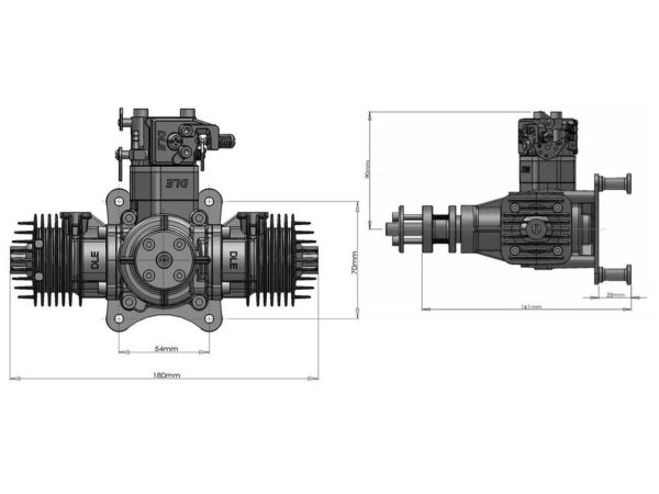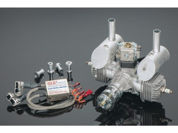 Derzeit kleinster DLE 2-Zylinder Motor. Kompakt und laufruhig, eignet sich der Motor besonders für vorbildgetreue Modelle. Typischer 2-Zylindersound für “semi-scale Sound”.