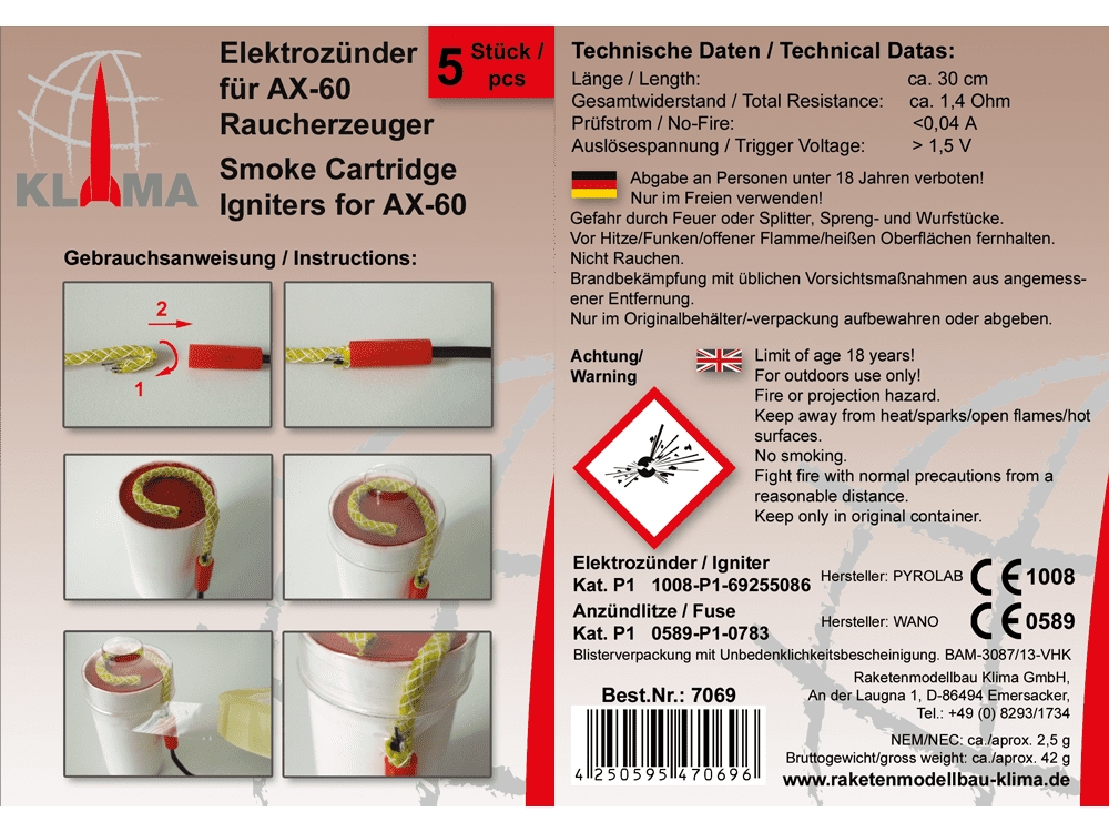 Elektroanzünder AX-60 – Rauchpatrone – 5er-Set
