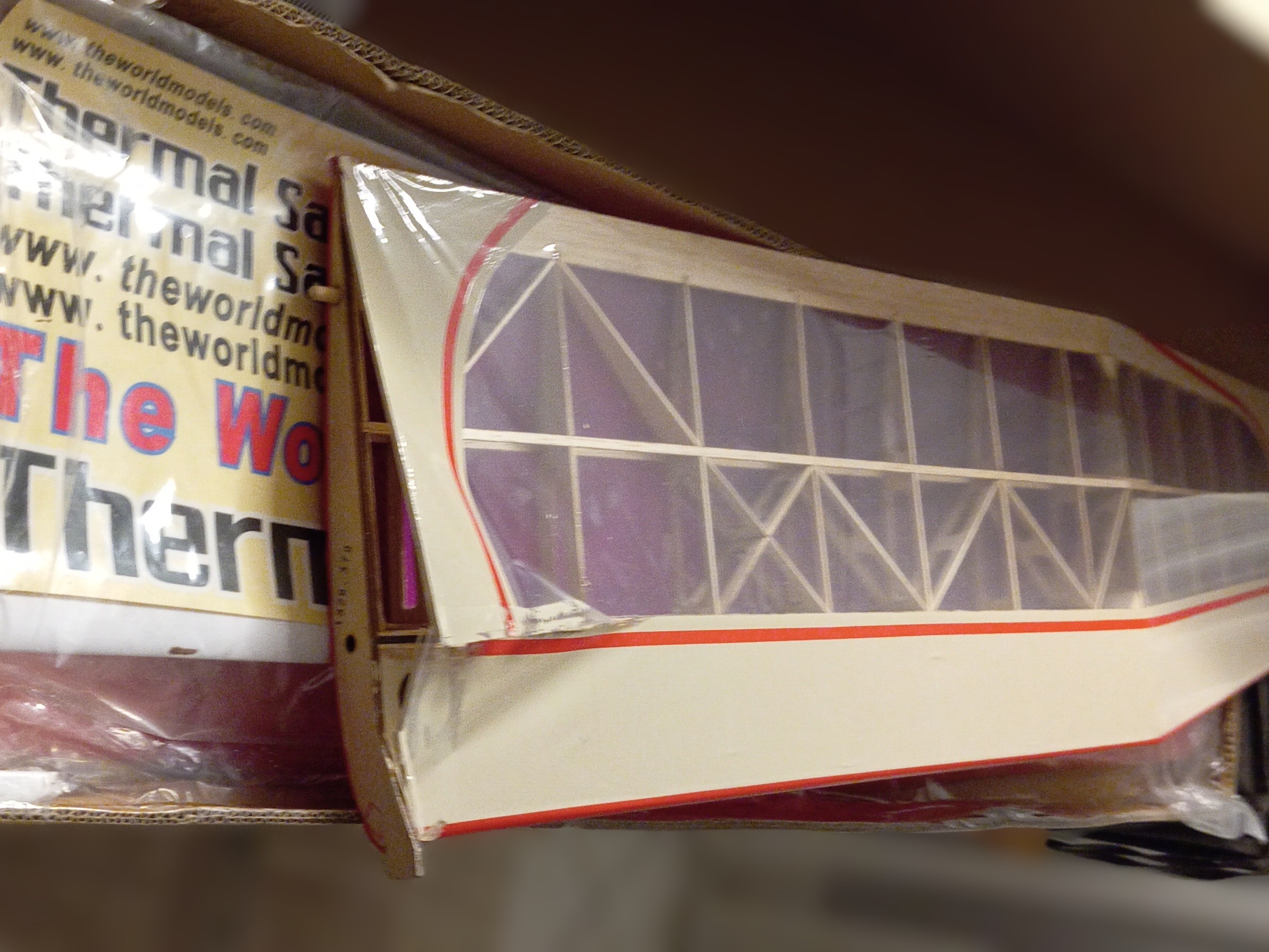 Der Aufbau des Thermal Rider ist komplett in Balsa gehalten. Die Tragflächen sind in Rippenbauweise aufgebaut und mit farbiger Folie bespannt. Die Steckung für den Verbindungsstab ist vorbereitet. Der Rumpf ist wie die Flügel aus Balsa gefertigt.