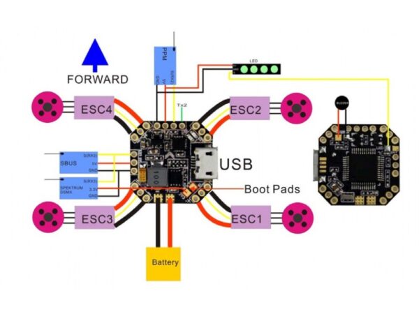 Der F3 Femto ist ein sehr kleiner und leichter Flight Controller mit integrierten PBD und 5 Volt BEC.