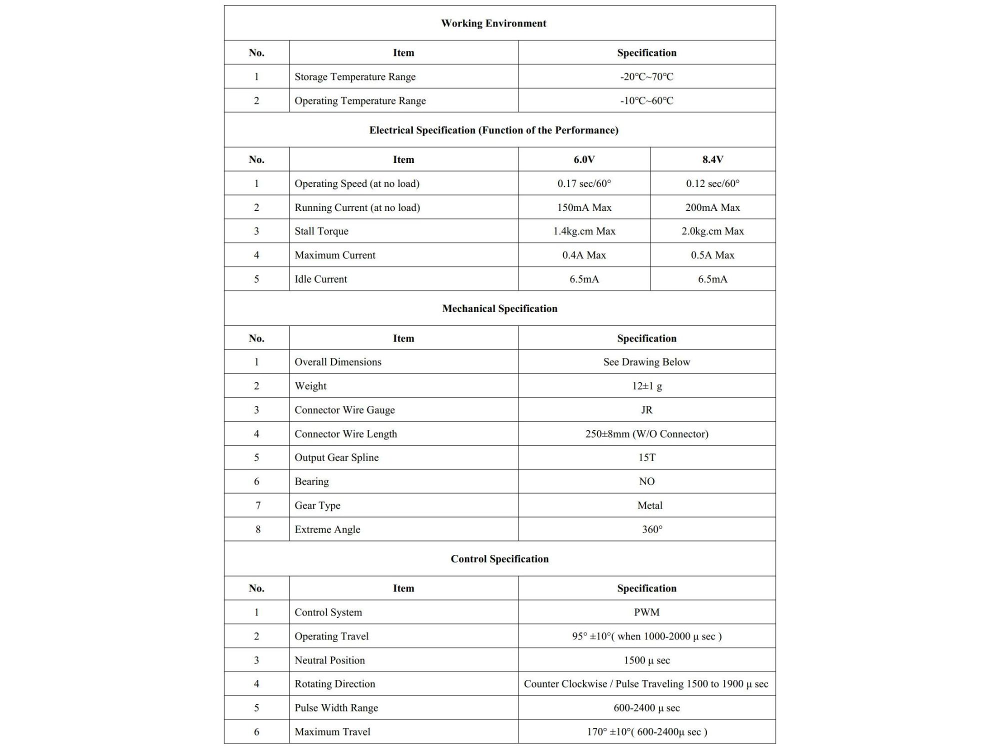 Geschwindigkeit (sec/60Grad): 0.17/6.0V 0.12/8.4V