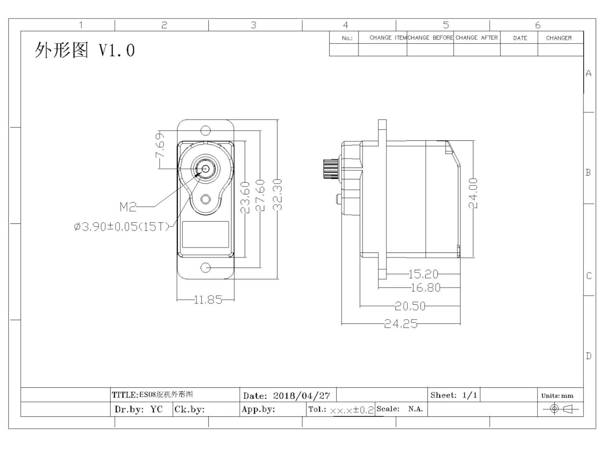 Emax Mini Analog Servo ES08MA II HV mit Metallgetriebe 2.0kg Stellkraft