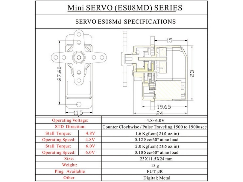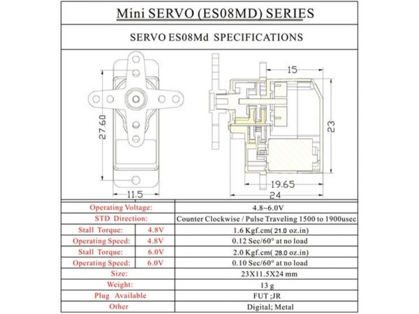 EMax Mini Digital Servo ES08MDII mit Metallgetriebe Stellkraft 2.0kg/6V