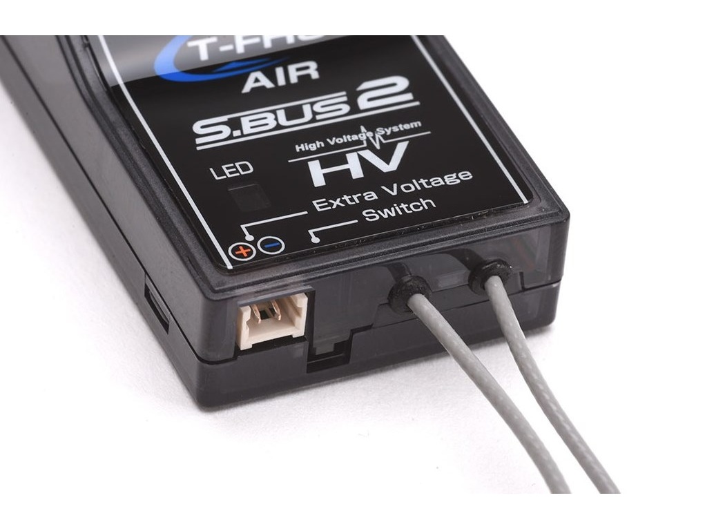 Dieser Empfänger arbeitet nur mit den neuen telemetriefähigen T-FHSS-Sendern zusammen wie derzeit T10J, T18SZ, T18MZWC.