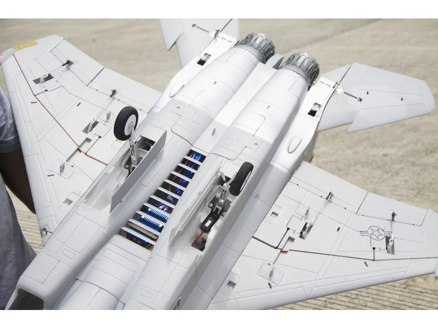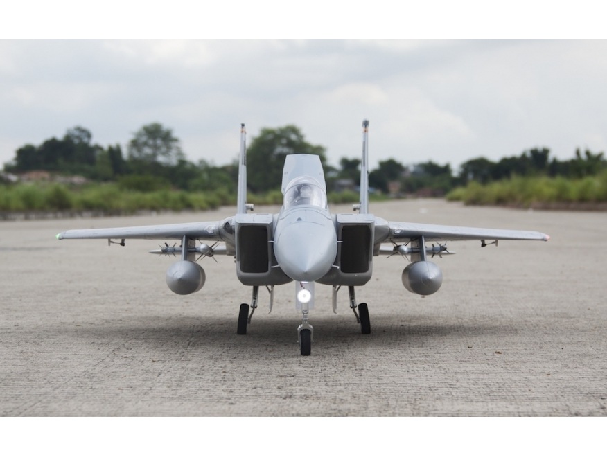 Die F-15 Eagle bietet eine traumhafte SCALE-Optik. Der Transport und die Lagerung des Modells gestalten sich dank der abnehmbaren Tragflächen und Leitwerke einfach. Das Fahrwerk ist robust und mit grossen Rädern ausgerüstet, die Fahrwerksklappen werden via Doorsequencer originalgetreu angesteuert. Die Tragflächen sind fertig vorbereitet, Querruder und Landeklappen sind funktionsfertig eingebaut. Dank Landeklappen und der Bremsklappe auf dem Rumpf ist die F-15 ein echter Traum zum Landen. Das Cockpit kann einfach entfernt werden und bietet grosszügigen Zugang zum Akkufach.