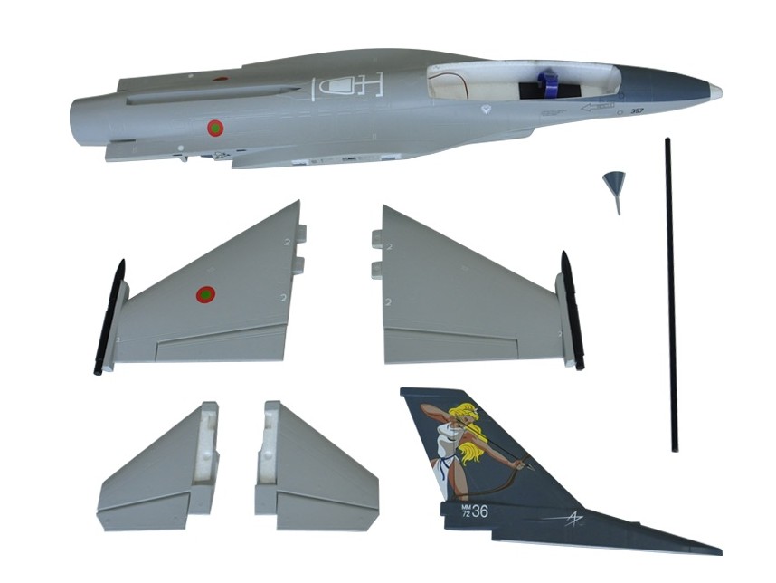Das Modell ist weitgehend vorgefertigt und innert kurzer Zeit bereits flugfertig. Der Jet verfügt über einen 3S – 50mm Impeller für reichlich Schub. Alle Komponenten wie Impeller mit Motor, Regler und Servos sind bereits eingebaut.