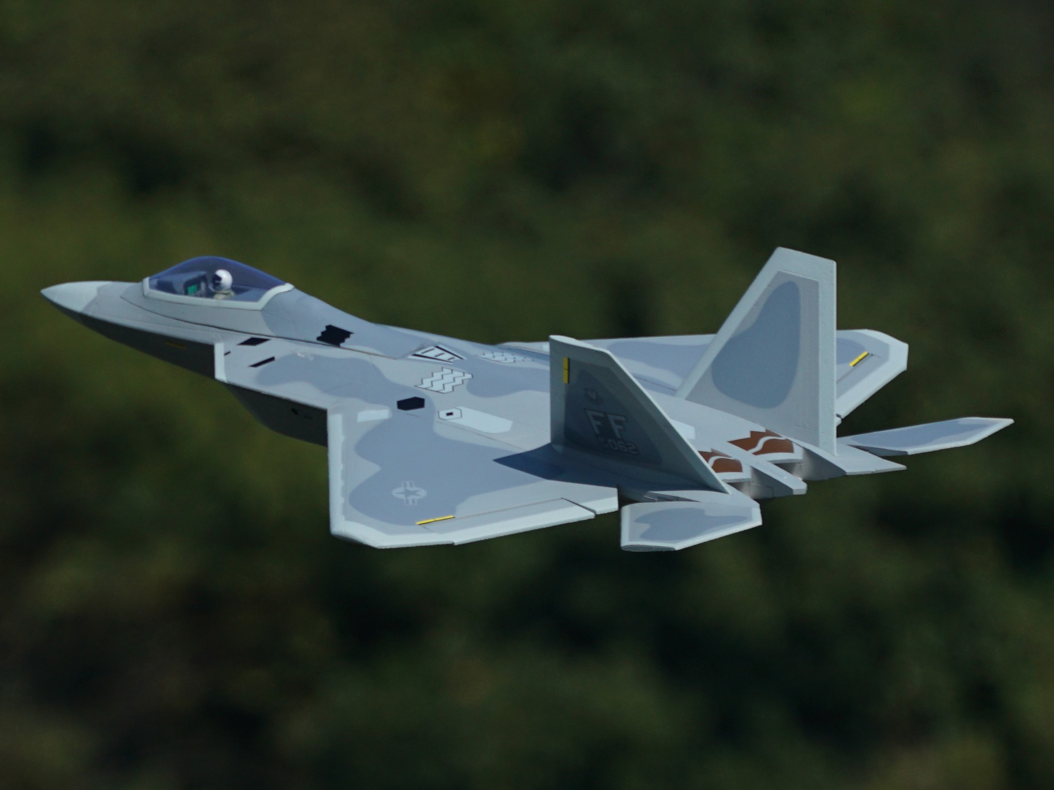 Das XFly-Modell ist ein detailgetreuer Nachbau des F-22 Raptor und wird als PNP-Set mit Antrieb und Servos ausgeliefert. Um das Modell so stromlinienförmig und massstabsgetreu wie möglich zu gestalten, wurde die F-22 mit einem doppelten Antriebssystem ausgestattet und verfügt über Scale-Details wie Lufteinlass, Cockpit und voll bewegliche Höhenleitwerke.