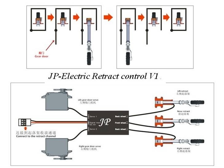 – mit 2 Servoausgängen für Fahrwerkstüren – Türen bleiben offen, wenn Fahrwerk draussen ist.