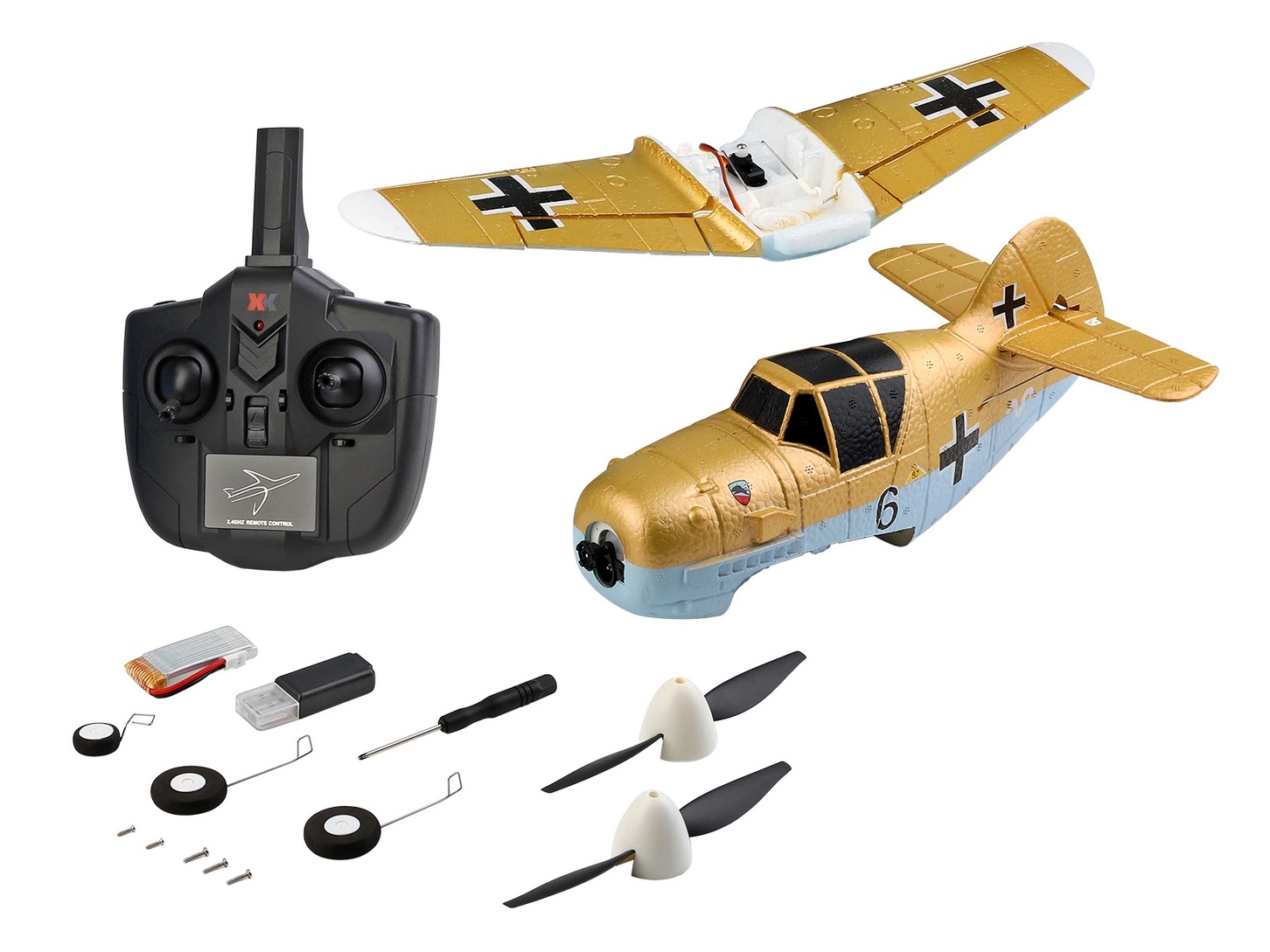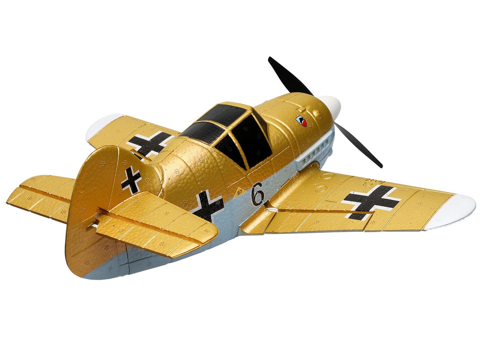 Dieser kleine Warbird wird als RTF-Komplett-Set angeboten. Der Motor und die komplette Elektronik sind bereits verbaut oder installiert. Weiter gehören auch der Akku, die RC-Anlage und ein 6-Achsen-Gyro zum Lieferumfang. Dank des integrierten 6-Achs-Gyro fliegt dieses Modell sehr ruhig und kann auch von Piloten mit wenig Erfahrung gut kontrolliert werden.