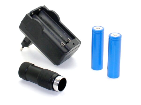 Praktisches Set für Vielnutzer oder für extra lange Einsatzzeiten bestehend aus zwei Zusatz-Akkus, einem Doppelladegerät und einer Akkuverlängerung für das Handstativ.