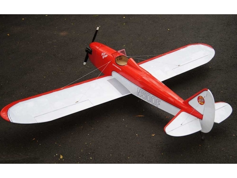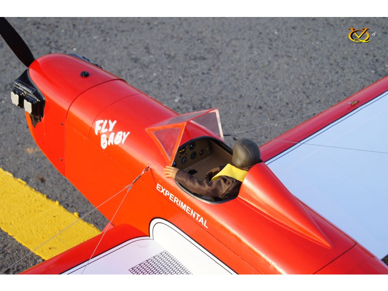 Das Fly Baby wurde mit viel Liebe zum Detail hergestellt. Das grosszügige Cockpit ist komplett nach oben abnehmbar und gestattet uneingeschränkten Zugang zum Flugakku und den RC-Komponenten. Das Modell kann wahlweise mit einem Elektroantrieb oder Benzinmotor ausgerüstet werden.