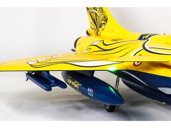Der 80mm Rafale EDF-Jet wird Sie begeistern. Das Modell verfügt über eine geniale Optik, zahlreiche Scale Details, voll funktionsfähige Canards und ein elektrisches, gefedertes Einziehfahrwerk. Weiter verfügt der Impeller-Jet über eine Pilotenfigur, Cockpitausstattung, Verkleidungen, abnehmbare Bewaffnung, Zusatztanks, Betankungssonde, Zielerfassungssensor, LED-Navigations-/Landelichter und funktionsfähige Klappen. Angetrieben wird der Jet durch einen starken 2100KV Brushless-Motor in Kombination mit einem 100A-Brushless-Regler und einem 12-Blatt – 80mm Impeller.