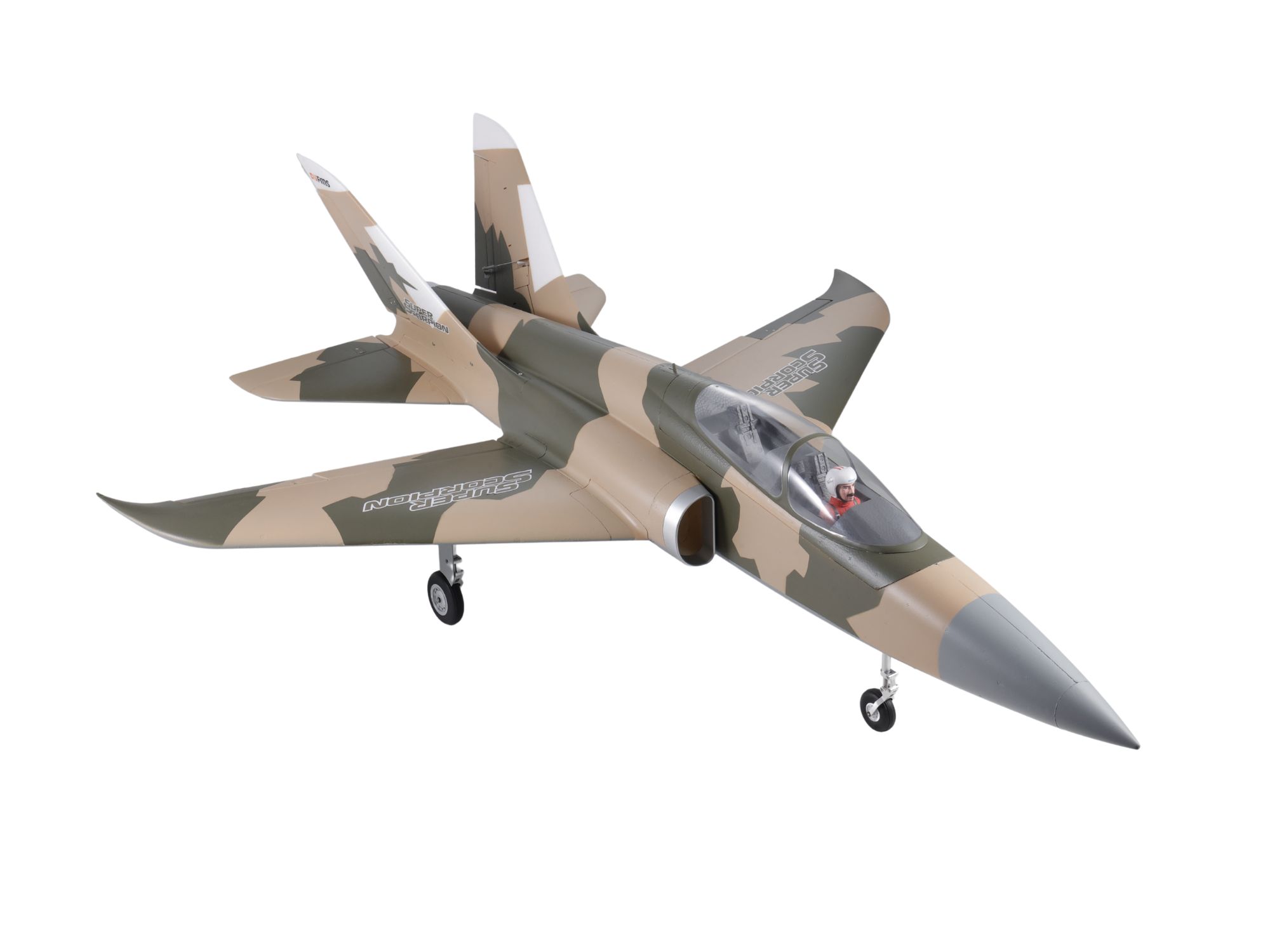 Der Jet überzeugt nicht nur durch seine Flugleistung, sondern auch durch seine durchdachte Konstruktion: Robuste CNC-gefräste Federbeine mit schockabsorbierender Wirkung, extrem haltbare Reifen, kleberfreie Montage mit Schnellverbindern, verdeckte Ruderanlenkungen, kugelgelagerte Kugelkopfanlenkungen und viele weitere Details machen ihn zu einem hochwertigen Gesamtpaket. Das auffällige Farbdesign sorgt für optimale Sichtbarkeit im Flug.