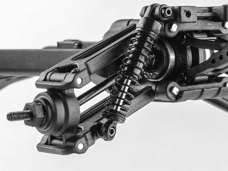 Das 4-Rad-Einzelfederungssystem sorgt dafür, dass jedes Rad unabhängig arbeiten kann und stets Bodenkontakt hält. So bleibt der Truck auch auf unebenem Untergrund stabil und kontrollierbar.