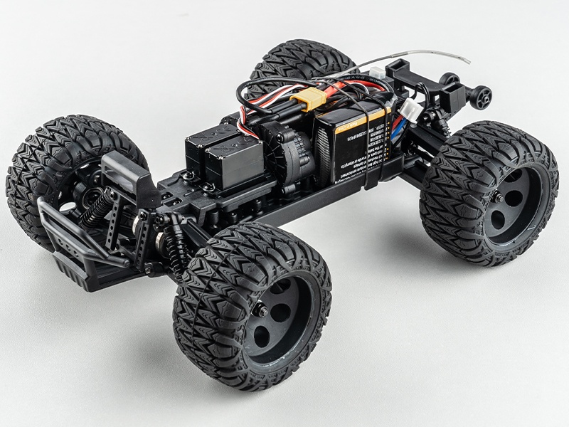 Der 370er High-Speed Brushed Motor liefert kräftigen Antrieb für schnelles Beschleunigen und hohe Endgeschwindigkeit. In Kombination mit dem 2S LiPo 900mAh Akku erreicht der Truck Fahrzeiten von bis zu 20 Minuten.