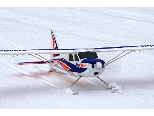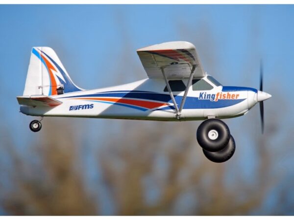 Der Kingfisher Multi-Trainer von FMS überzeugt nicht nur durch einsteigerfreundliche Flugeigenschaften sondern auch durch einen revolutionären Lieferumfang. Mit diesem Modell sind Starts und Landungen von praktisch jedem denkbaren Untergrund möglich. Mit den grossen Oversize-Rädern ist in Zukunft auch eine eher schlechte Rasenpiste kein Problem mehr. Durch die Schwimmer und die Skis sind im Winter Landungen im Tiefschnee und im Sommer Abenteuer im und ums Wasser möglich. Weiter finden Sie im Lieferumfang auch eine Halterung für den FPV-Flug. Das Modell ist vollständig aus robustem und leichtem EPO-Hartschaummaterial gefertigt. Sowohl der Motor als auch der 40A-Regler sind flugfertig im Modell installiert. Neben dem Antrieb sind auch sechs Servos fertig verbaut und verkabelt. Gesteuert wird das Modell über Höhe, Seite, Querruder und Flaps.