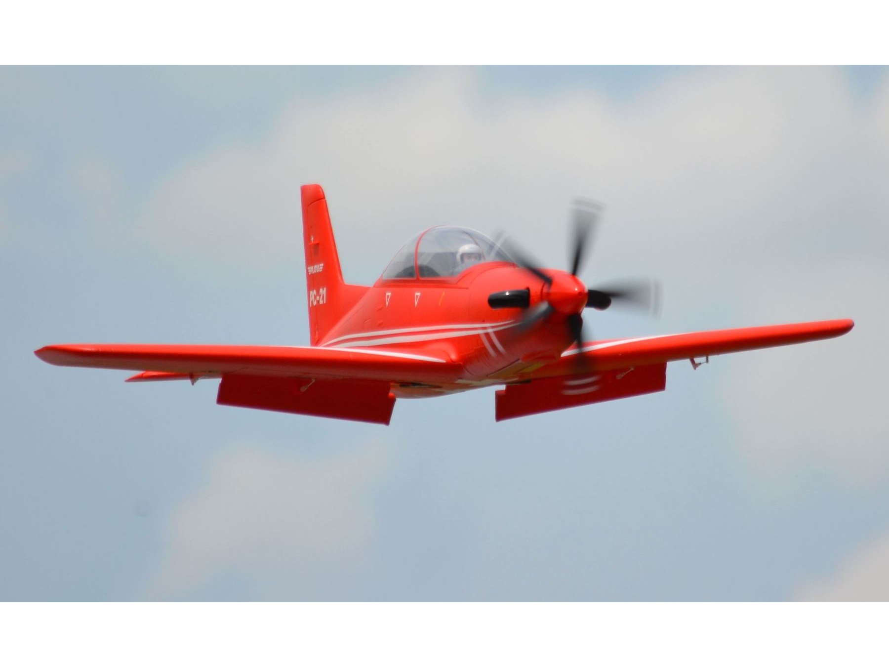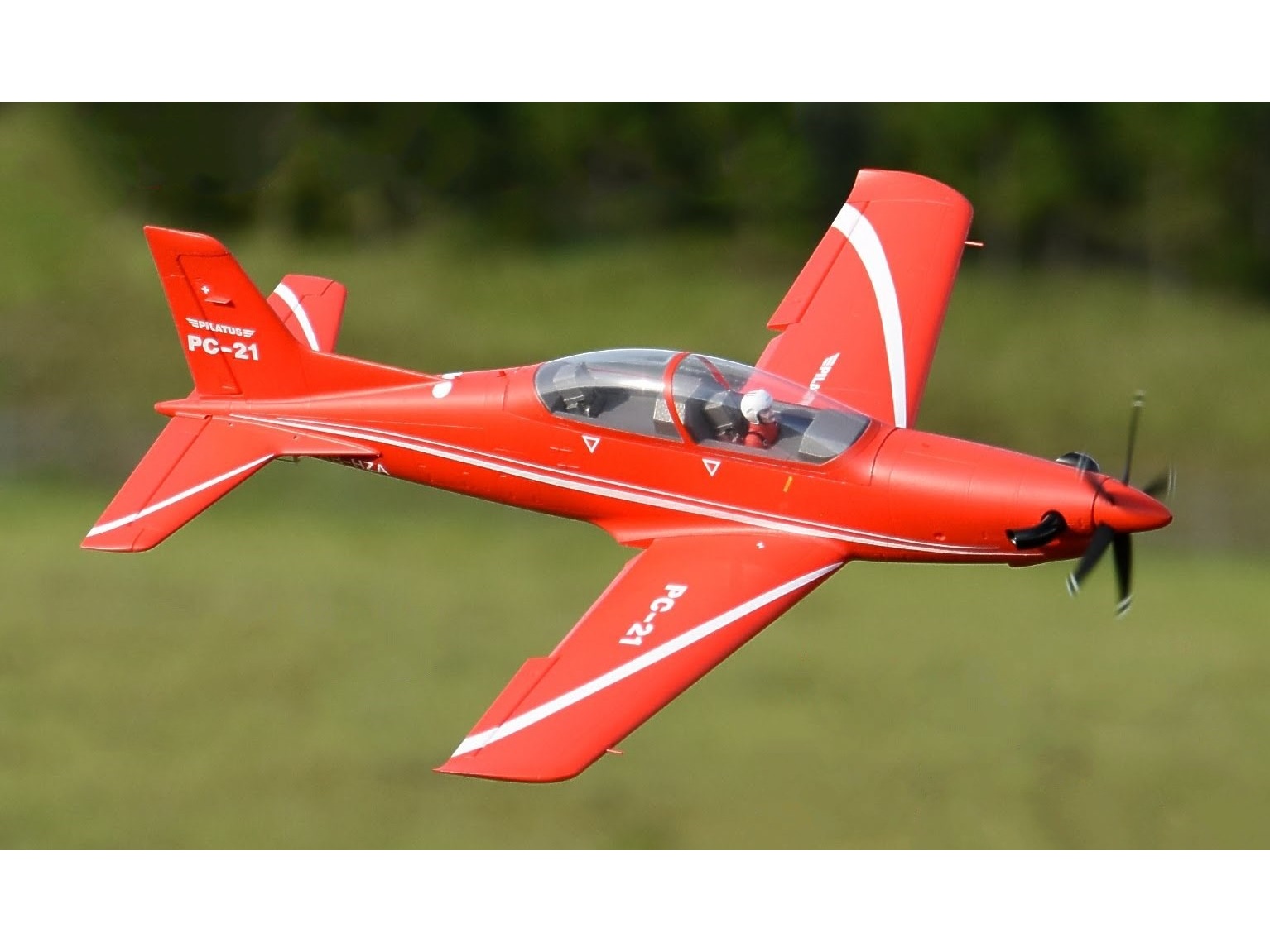 Die Pilatus PC21 besticht durch eine detailgetreue Optik mit vielen Details. Das Modell verfügt über Landeklappen und ein elektrisches Einziehfahrwerk. Der verwendete EPO 52 Schaumstoff, der das Gesamtgewicht um rund 15 Prozent reduziert, optimiert die fliegerische Leistung ohne Abzüge bei Stabilität und Struktur des Flugzeuges machen zu müssen. Alle Servos, Motor und Regler sind bereits von Werk aus verbaut. Die Pilatus ist innert ca. 60 Minuten bereits flugfertig zusammengebaut.
