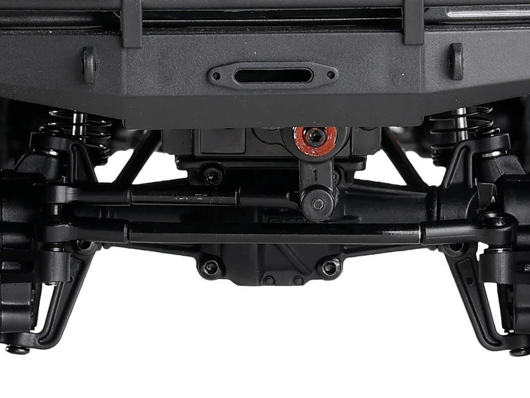 Der FMS FCX18 Land Cruiser LC80 ist ein detailgetreuer RC-Crawler im Massstab 1:18. Das Modell wird einem robusten 4WD-Fahrwerk getragen, das den Crawler zuverlässig durch jedes Gelände manövriert. Seine Aluminium-Rahmenschienen sorgen für eine steife Plattform und erstklassige Performance.