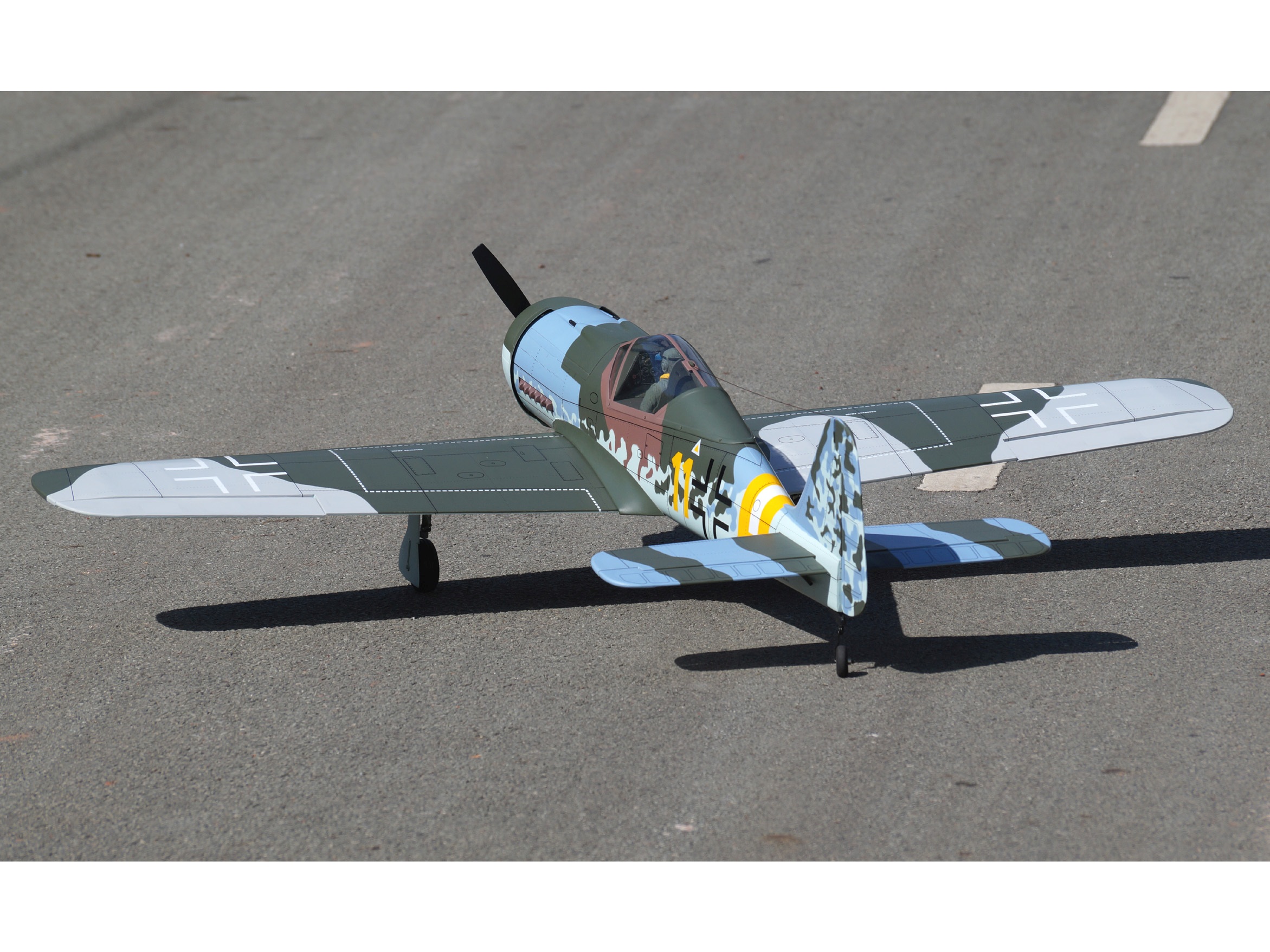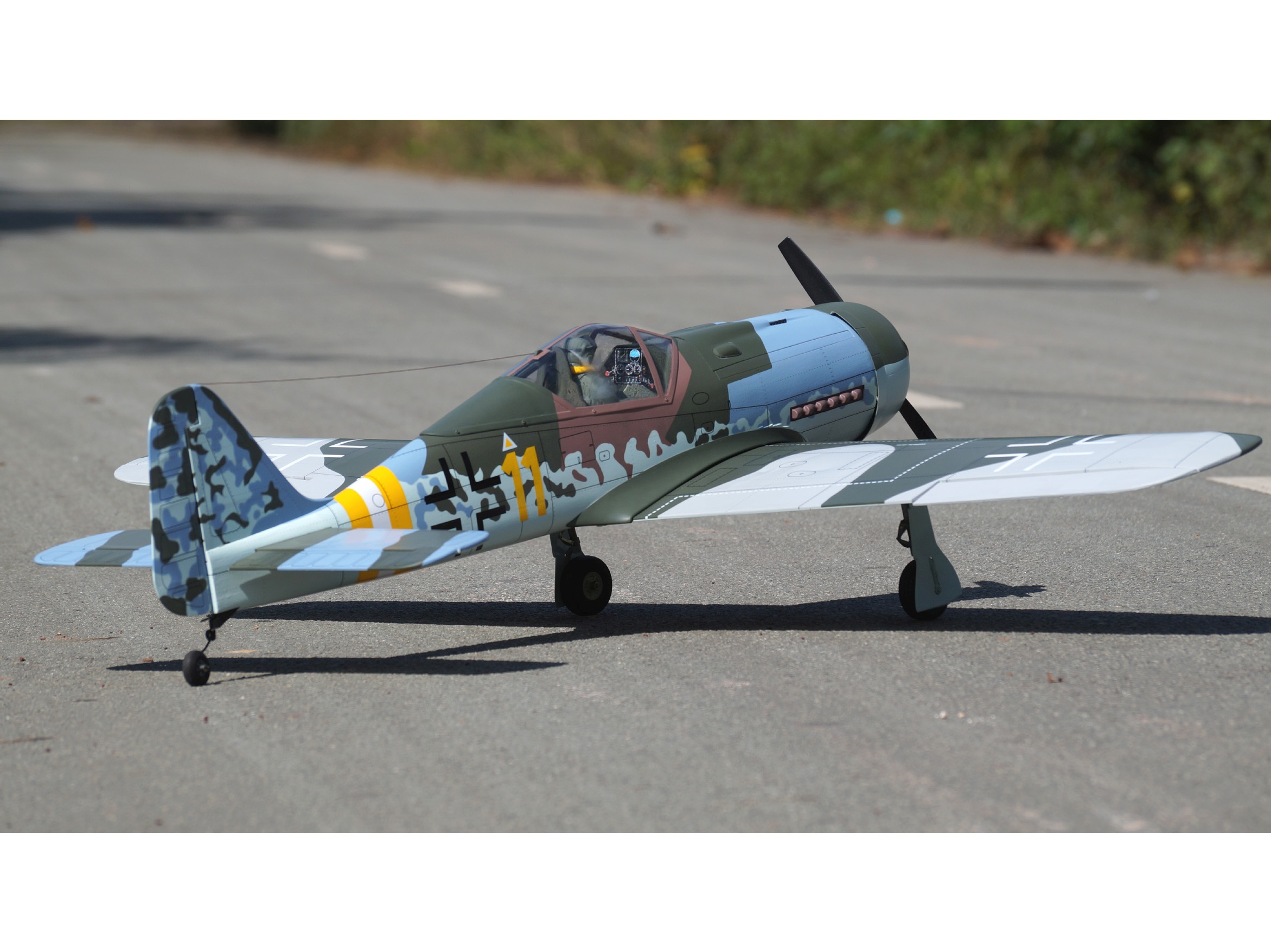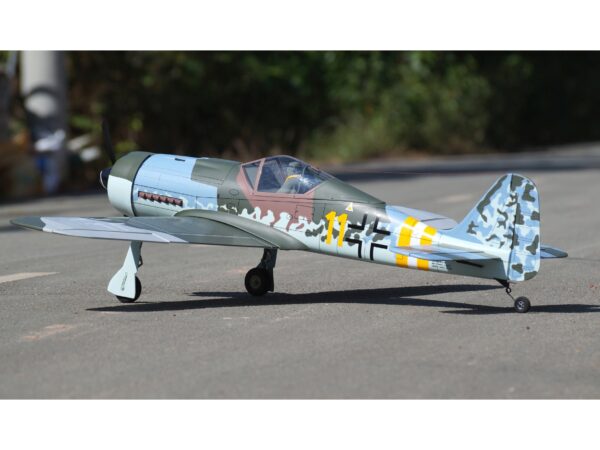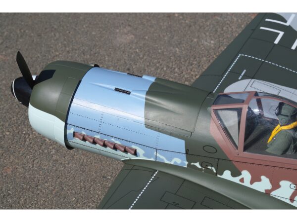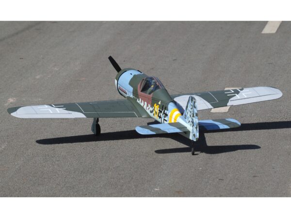 Das Modell wurde für Elektroantrieb konstruiert und besitzt ein wunderschönes Finish mit vielen Scale-Details. Das grosse, abnehmbare Rumpfoberteil ermöglicht dabei einen schnellen Wechsel des Flugakkus von oben. Auf Wunsch kann die Focke auch mit einem Verbrenner-Motor ausgestattet werden.