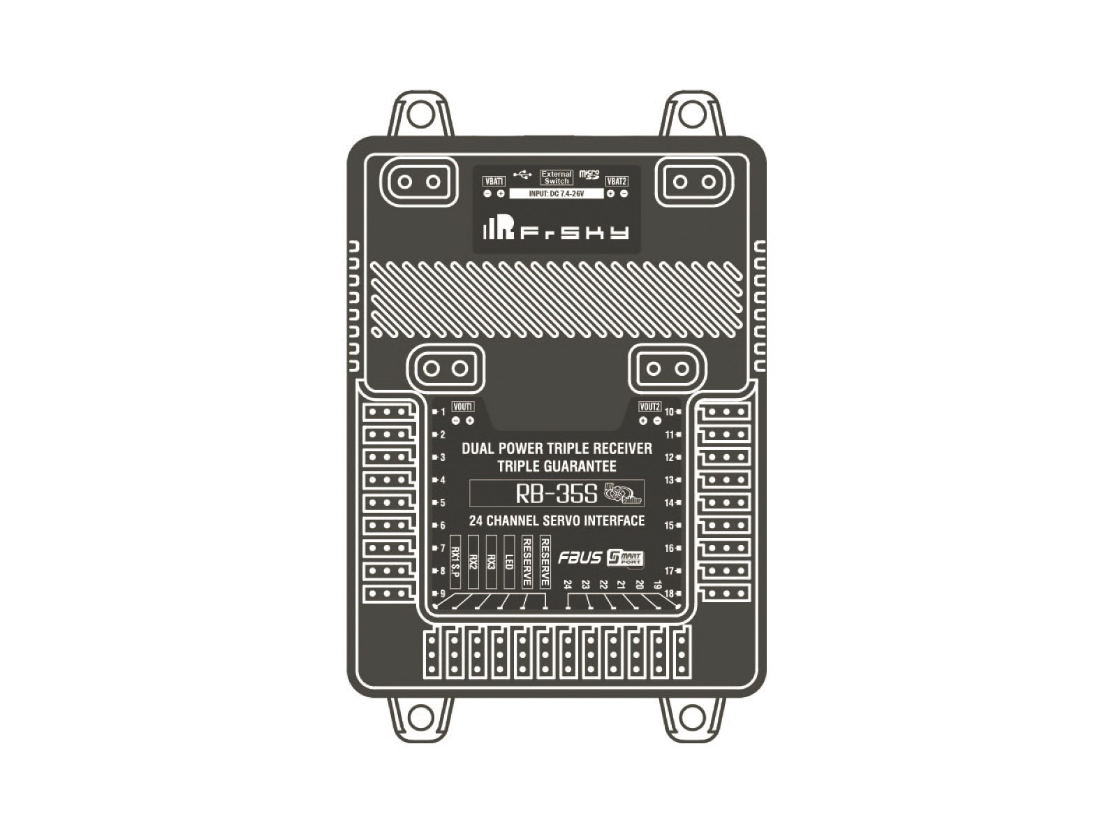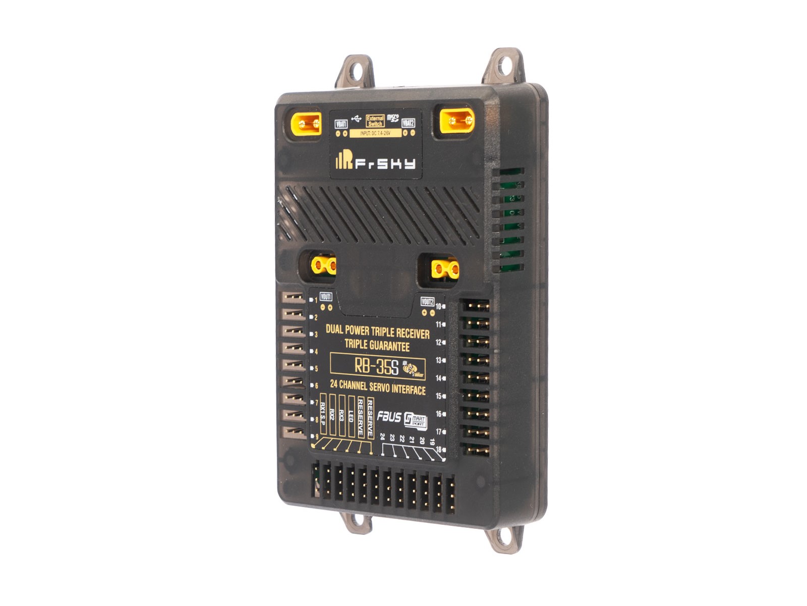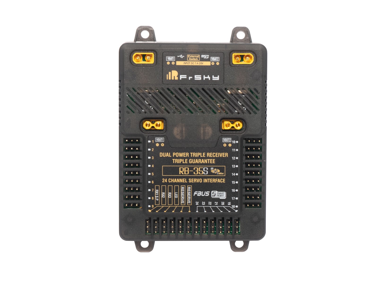 Die RB-35S wurde so konzipiert, dass sie sowohl Doppelleistung als auch Dreifach-Empfängerredundanz bietet. Dies bietet dem Anwender eine dreifache Redundanz des Empfängersignals und der Telemetrie durch Hinzufügen von mehreren Anschlüssen (RX1-3 IN / S.Port). Das Dual-Power-System bietet eine sichere und effiziente Möglichkeit, das System mit Strom zu versorgen, wobei die Stromquellen über ein Paar Standard-XT30-Anschlüsse angeschlossen werden.