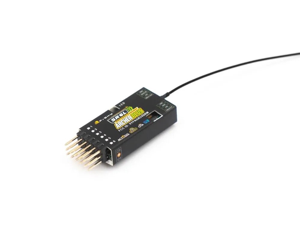 Die Archer Plus-Serie von FrSky bietet eine optimierte HF-Leistung durch verbesserte Anti-HF-Interferenz-Fähigkeiten und modernste Protokollunterstützung. Der Archer Plus SR6 Lite kombiniert diese Eigenschaften mit einem integrierten 6-Achsen-Stabilisierungssystem (SXR), das für ein besonders ruhiges und kontrolliertes Flugverhalten sorgt – ideal für Flächenmodelle und leichte RC-Setups.